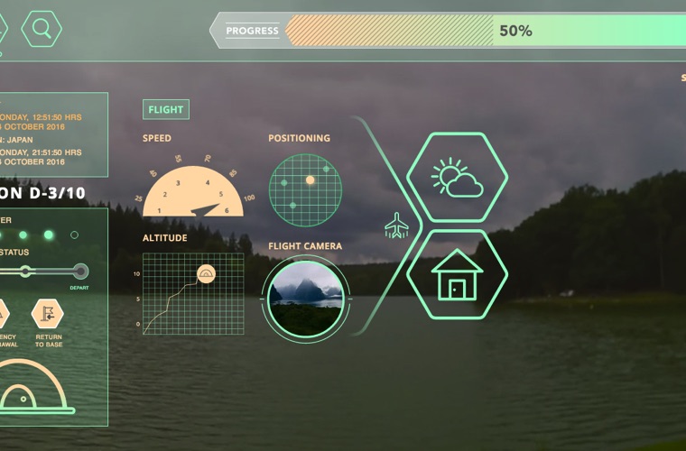 This control interface by Michelle Chong is for an automatic emergency shelter delivery system. The idea is that emergency supplies can be delivered to trouble spots automatically.