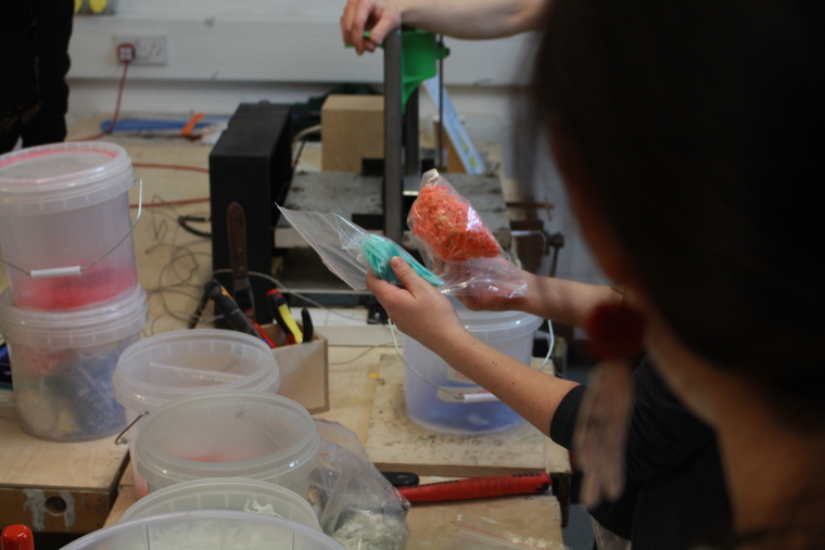 For UAL Green Week, we hosted a DIY plastic recycling workshop in the 3D workshop at LCC featuring Happenstance Workshop, a design company focusing on quality eco-effective products for the home. The event came about as a result of a collaboration with BA (Hons) Graphic & Media Design student Carina Figueiredo.