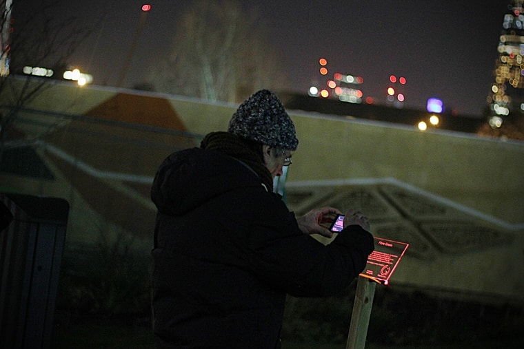 ‘Many Hands’ illustrated the phrase “Many hands make light work”, with the projected image revealed as more and more members of the Elephant & Castle community stood together side by side. ‘Proximity Glow’ saw parts of plants and trees start to glow brighter as visitors got closer to different segments of the installation. And ‘Fibre Grass’ allowed visitors to change the colour of the grass by tweeting using a specific hashtag.