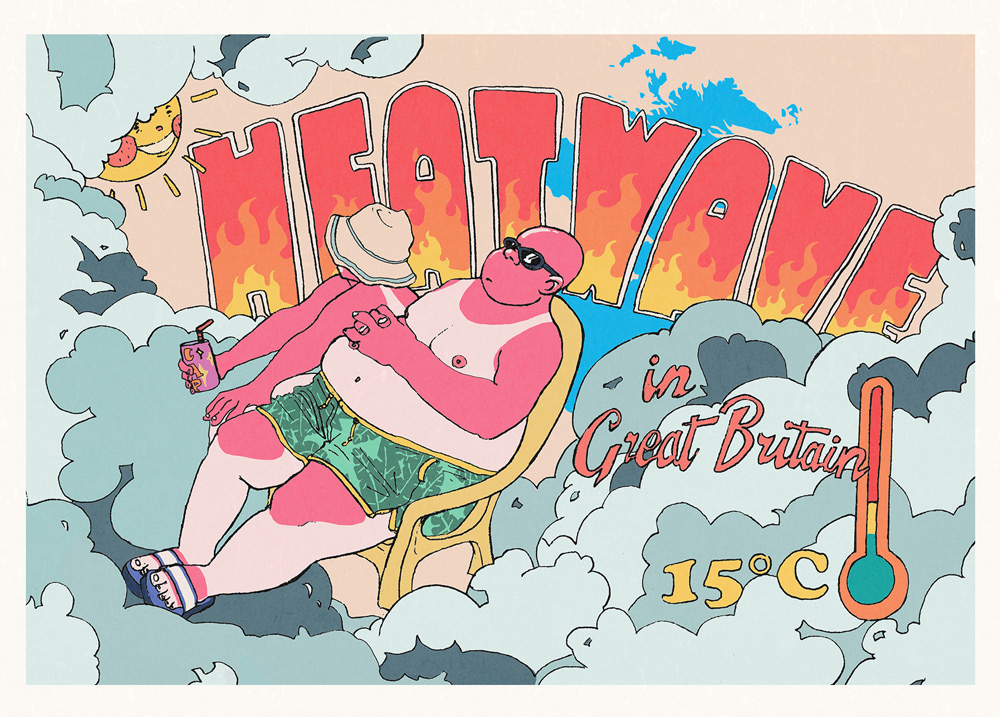 Lara: Normally a lot of research goes into my process so I can get a sense of how I want the end product to look visually. At the time I had been working on a project where I created a graphic narrative from David Bowie’s ‘The Jean Genie’. The aesthetic I used is the same retro postcard cartoon look I was going for in ‘Heatwave’.