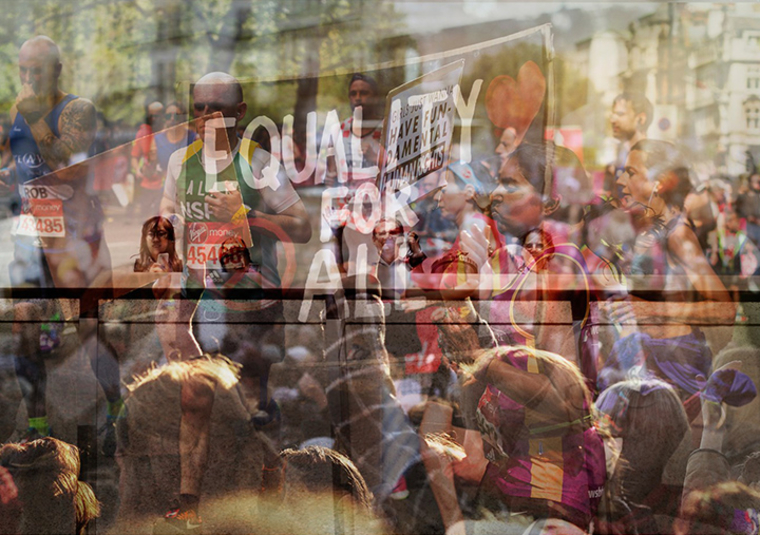 Leah: The work process first involved choosing and editing down the images that I felt best represented ‘Togetherness’, from the different events or moments I had captured. I then digitally layered each image, whilst altering the transparency and arrangements of the photos, in order for certain elements of each photograph to be clearer than others. An example of this is the ‘Equality for all’ poster from the Women’s March photo.