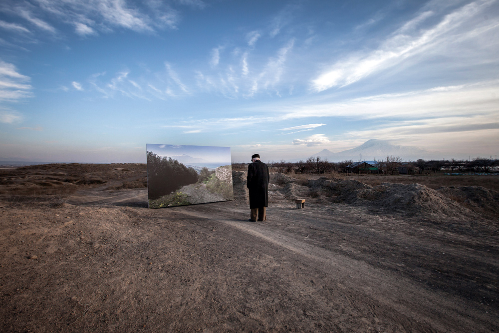 © Diana Markosian Movses, aged 105, slowly approaches a life-size landscape. He pauses, looks at the image, and begins to sing: ‘My home… My Armenia’, 2015, 1915 series