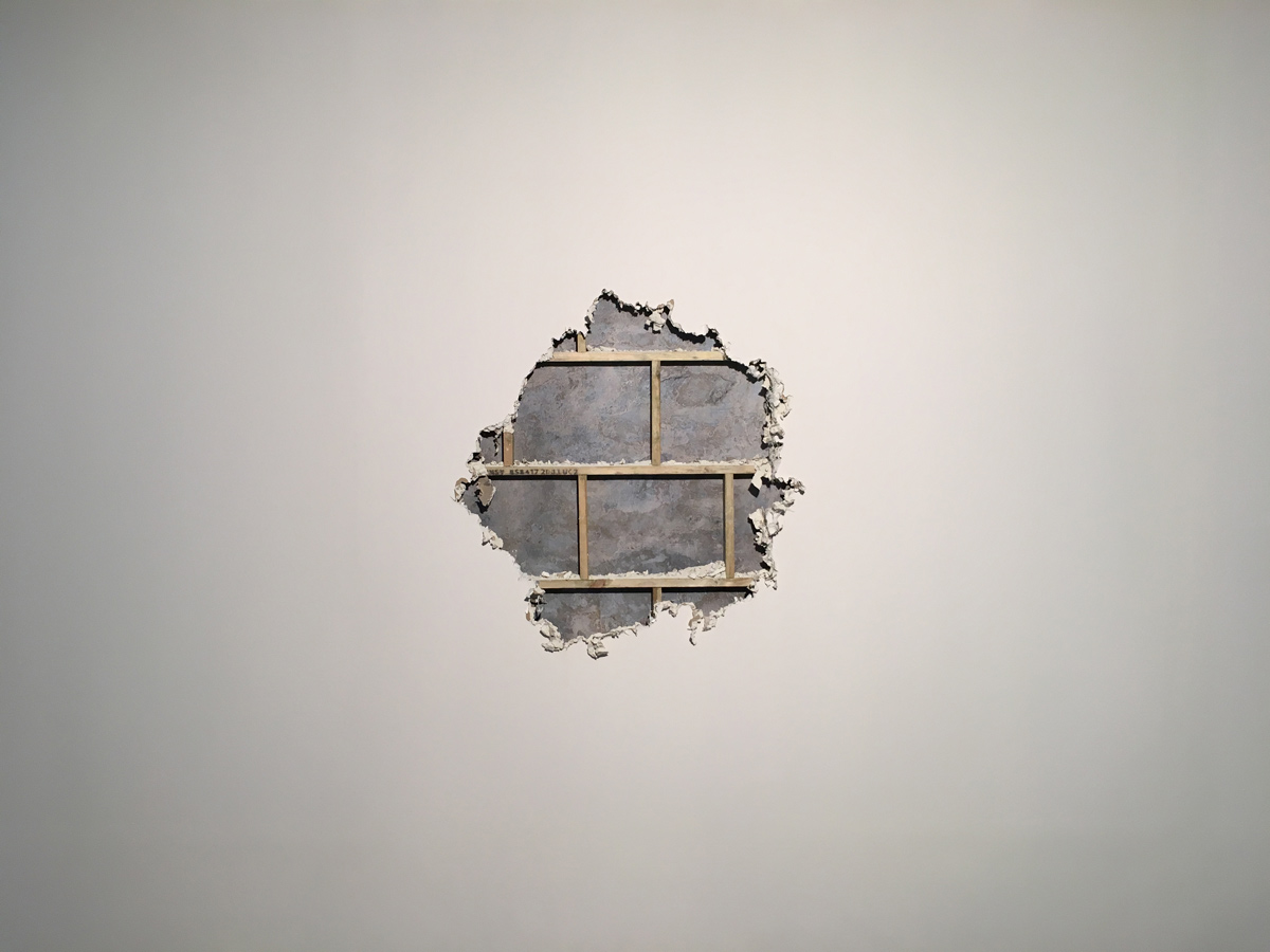 The artist is interested in connecting these two spaces by involving the viewer in the representational space of the photograph. In his art piece Rebuild, Mingdi constructed a concrete wall which he then photographed. This photographic print is displayed within a broken gallery wall, turning the photograph into a part of the actual gallery space, inviting the viewer to approach and even touch the work.