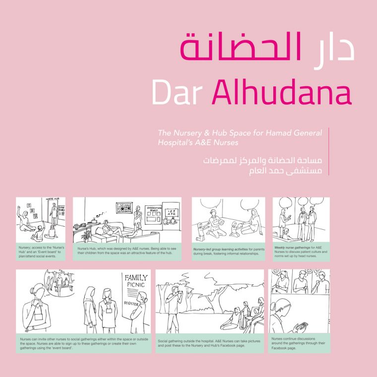 I took this opportunity to not only tear down these barriers but also to encourage information exchange in order to better equip nurses working in the ER. Dar AlHudana is a service offering an informal space and childcare facilities in which nurses can connect with one another in a stress-free environment, exchanging knowledge, skills, and experience by participating in a range of social gatherings.