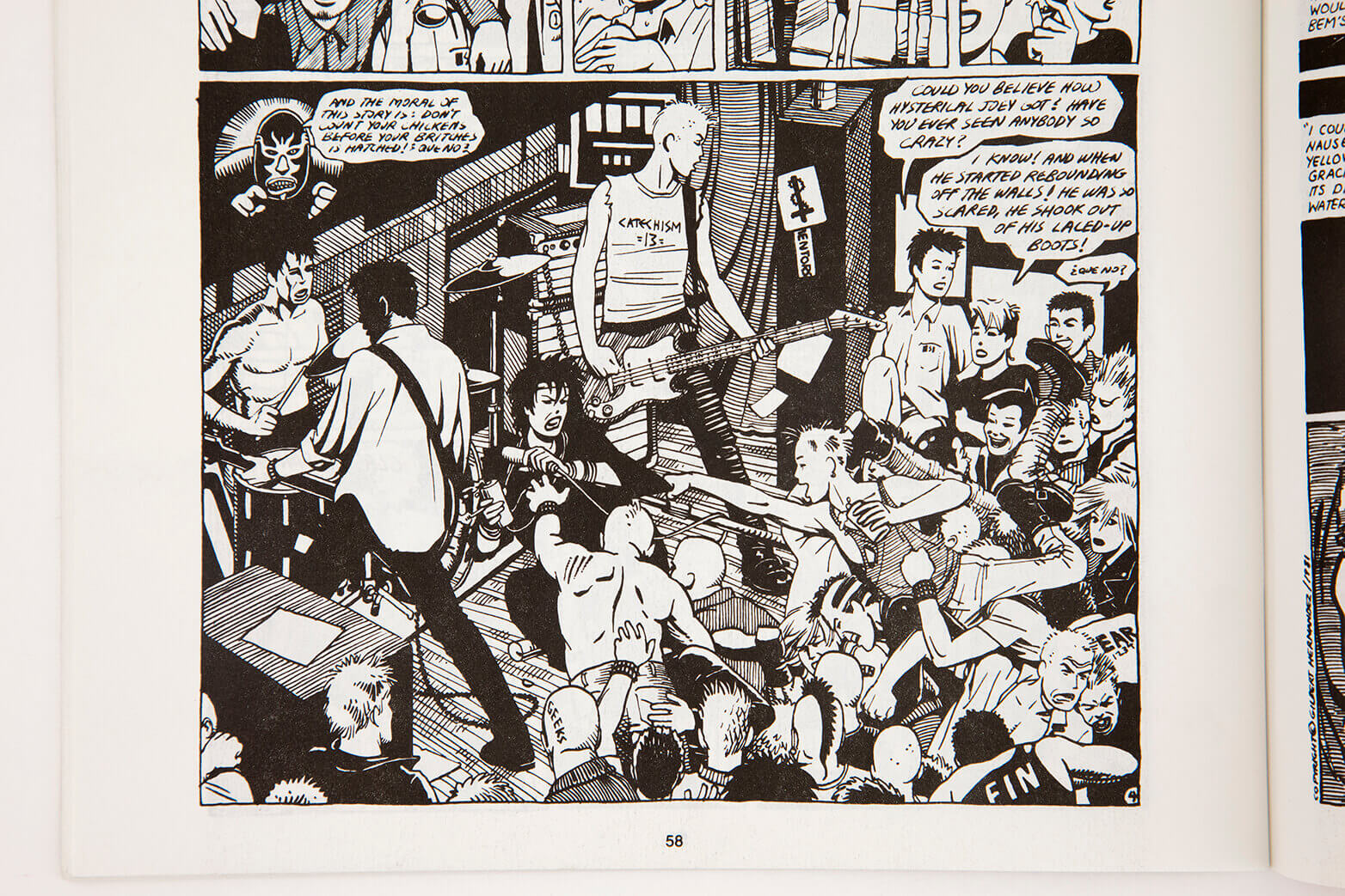 Comic books, zines, posters and photographs from the Les Coleman Collection, Her Noise Archive and London Musicians’ Collective highlight the permeable relationship between art, music and politics, with photographs from Colin Jones and Dick Scott-Stewart offering context through their observations of music and youth culture.