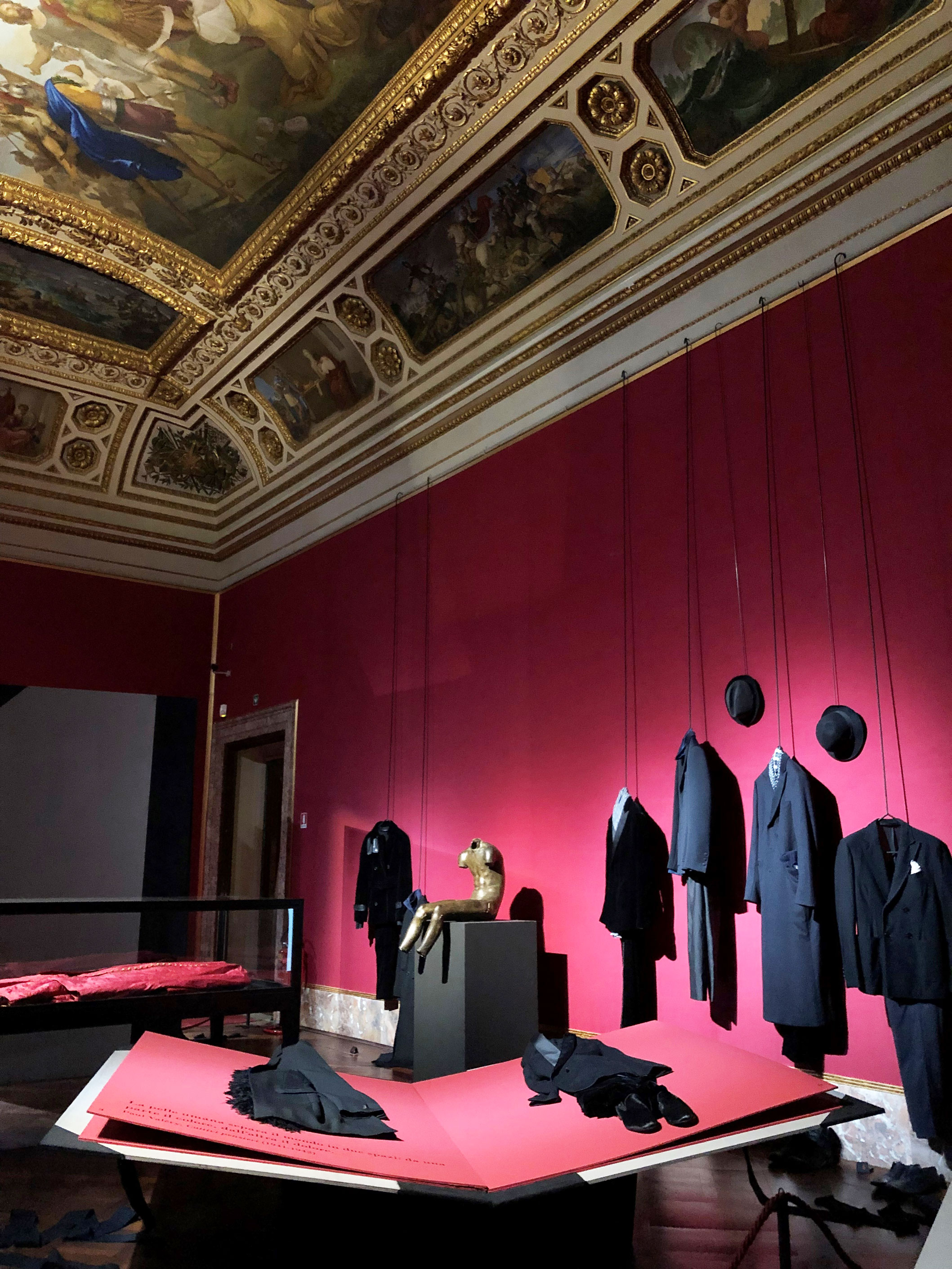 The temporary exhibition is installed at Palazzo Pitti Museo della Moda e del Costume: Florence’s (and Italy’s) growing permanent collection of fashion. On display are menswear garments donated and purchased for the collection from key designers who have shown at the fashion trade show Pitti Uomo in the past 30 years.