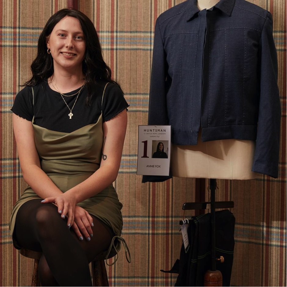 Second-year students from BA (Hons) Bespoke Tailoring participated in a challenge posed by the renowned tailoring brand Huntsman Savile Row: to create new designs from unclaimed bespoke garments and excess cloth. With the objective to promote sustainable practices and support emerging talents, the British-heritage company offered LCF students the opportunity to win a 5-week internship to learn from the brand's craftsmanship and their zero-waste practices. The judging panel chose Annie Fox as the winner of the internship while classmates Tracie Grillo and Polly Harris were highly commended. We spoke with Annie to klearn about her experience and what she expects from working with one of the most prestigious bespoke tailoring brands in the UK.