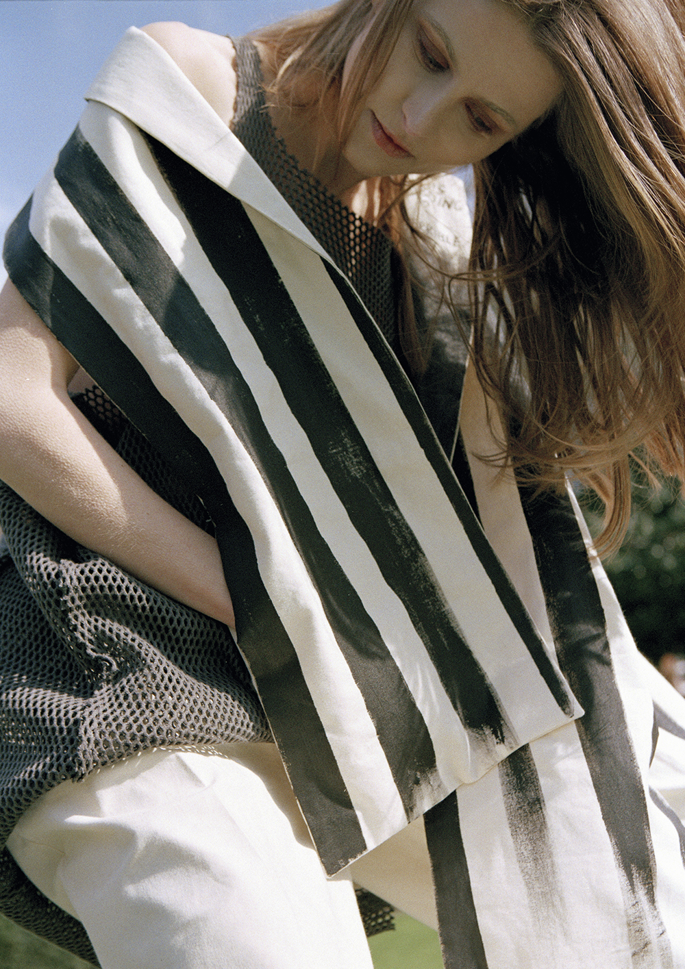 For now I am focused on producing luxury fashion scarves that are mainstream and nothing new. But the other fun part of my brand for now is creating exclusive hand painted clothing collection in collaboration with different designers. My degree was in Fashion Illustration so the role of constructing the garment is not yet something I can do by myself. This meant I had the opportunity to work with some awesome designers so we could create something interesting together. This season is a collaboration with London based designer Bianca THOYER-ROZAT that created designs and canvases for my art interpretation.