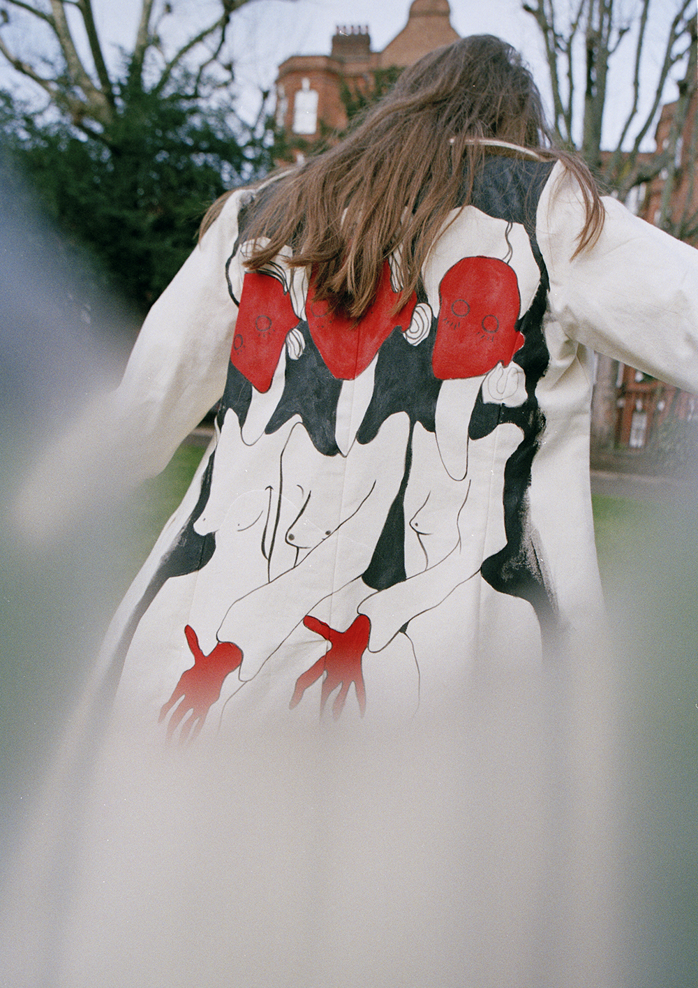 The brand aesthetic is edgy, artistic and at the same time luxurious with details. I want to push the idea that ugliness and beauty can coexist, and that art and fashion have no boundaries. Stay true to your style and embrace your creativity! The inspiration for my debut collection came from my favourite artworks and fashion illustrations that I’ve created over the past year. Being very straight forward with slogans and signs is on point in the collection as well.