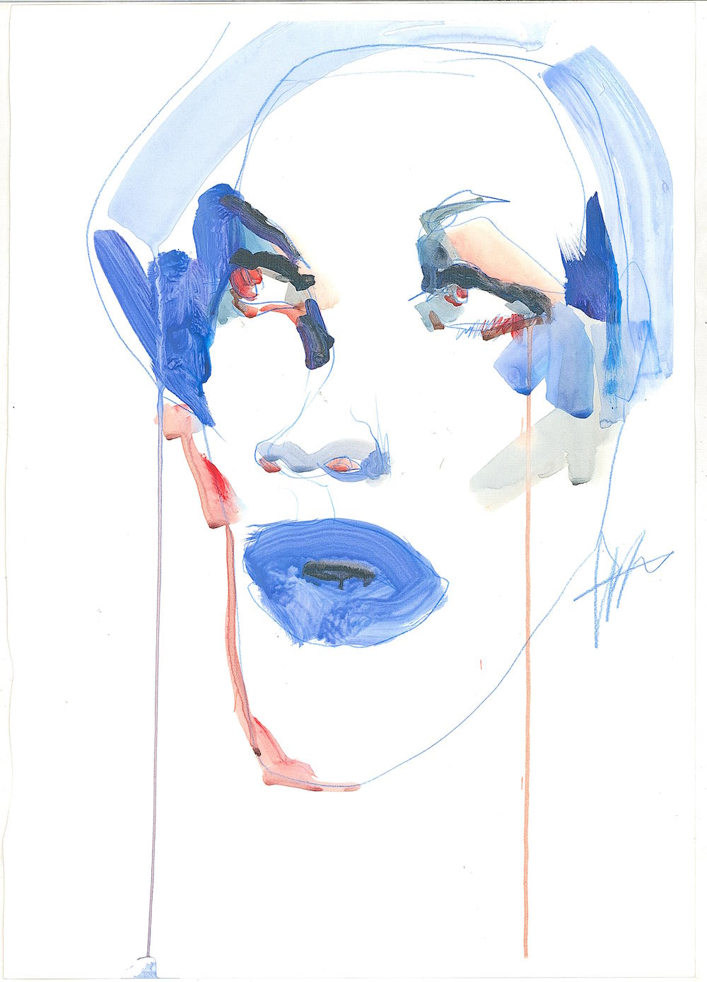 I used colour pencils for the contour line, a mix of acrylic paint, ink and watercolour for the coloured parts. Instead of using photograph references while drawing, I summarised all the traits and recombined them in each sketch before I drew.