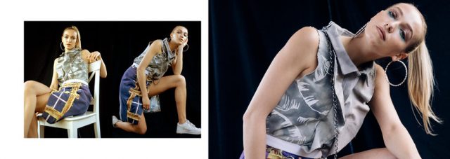 Care for the environment and thirst for action characterise the whole of Ballout’s production, as she creates looks with a sustainable, slow fashion and up-cycled character. For instance, all the looks in her Denim Couture – Upcycled Tribute Project 2018 and her autumn/winter ’18 Capsule collection are made out of used Levi’s jeans, as equally up-cycled are the garments for her MARR X BALLOUT collection. A condemnation of human responsibility in climate change and environmental disasters is also at source of the skeletal fish motifs of her A/W ’18 collection, which targets man’s responsibility in the destruction of the Great Barrier Reef.