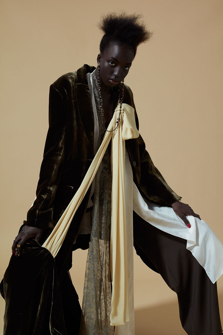 My final collection is a summary of finding and defining my personal aesthetics in MA course. Because of the different education and life experiences in China, Japan and London, my personal aesthetics cannot be built without the conflict of multiple cultures. My collection started from the Japanese traditional aesthetic Wabi-Sabi and Chinese culture of Zen, combined with perfectionism of tailoring in Western fashion world. I think It is quite interesting to combine these diametrically opposite Aesthetic taste. I want to give these traditional aesthetics more modern and new interpretations.