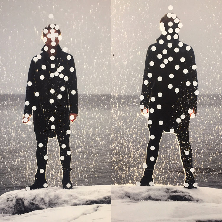When scientists placed detectors at the slits to observe what was happening, the interference pattern disappears; the implication that the particles somehow know they are being observed continues to baffle the scientific community. There is no doubt that observation effects any system – think about photography itself, again. Bevan makes a creative interpretation of the double-slit experiment in the piece Waves and Particles (2017), and invites the observers to place a white dot (particle) directly onto the image as an act of observation (and collapsed superposition), thereby effecting the visibility of his own body image, and progressively disappearing during the course of this exhibition, and becoming in superposition (again).