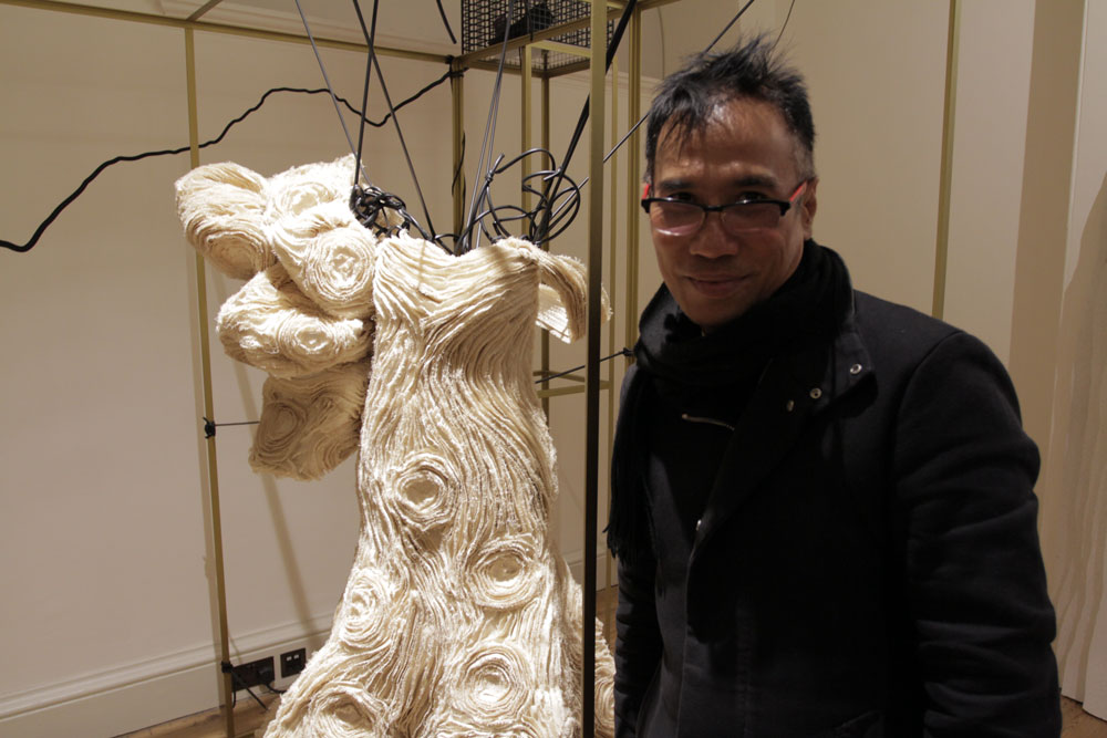 “My collection is about the use of banana hemp – in the Philippines we call it ‘abaca’. It’s one of the main sources of livelihood in the Southern part of the Philippines by the minorities and the B’laan Tribe there. It’s the most common and sustainable material we use in our daily life, and not just in clothing – in everything. I want to introduce more people to using it.” – Jared Servano