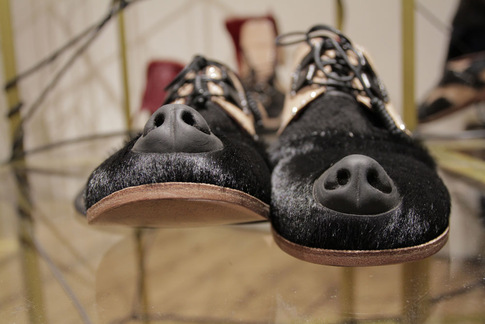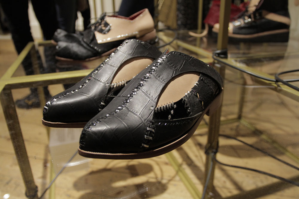 “The Philippines version of Utopia is dystopia. My collection is inspired by my dog Homer the Boston Terrier. Each pair of shoes represents a different part of him. The foil in the shoes is the dystopic element – it’s a Cheetos crisp packet used in a different way. Representing your country and showing your collection in London is an amazing experience – it’s a hub of culture and a mix of everything.” – Maco Custodo