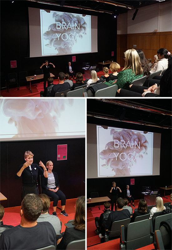 The evening kicked off with Jo and Tina hosting an interactive session of Brain Yoga, which aims to calm, relax and focus the brain on 'being human in a digital world.' Jo explained that the 'Amygdala' is the part of the brain that controls emotion and the typical 'fight or flight' aspect of brain activity. Interestingly, it is proven that a persons IQ actually decreases in a state of stress or panic, so it is important to participate in brain yoga or similar activities to ensure that your brain is functioning rationally during pressured and stressful situations such as meetings, interviews or business pitches.