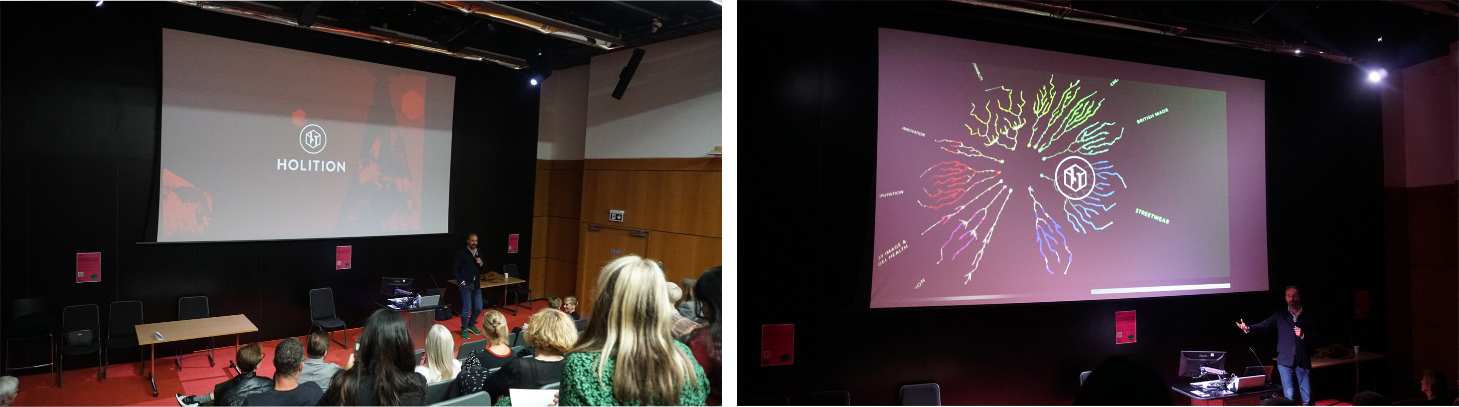 The evening was then followed by a presentation from Jonathan Chippindale, co-founder of Holition who discussed the purpose of the organisation and how they are often described simply as 'practice based consultants', creating hyper-personalised products for companies that are attempting to use digital technology as a way of re-instating the human aspect to their organisation. Holition has previously collaborated with Professor Helen Storey MBE and Dress For Our Time.
