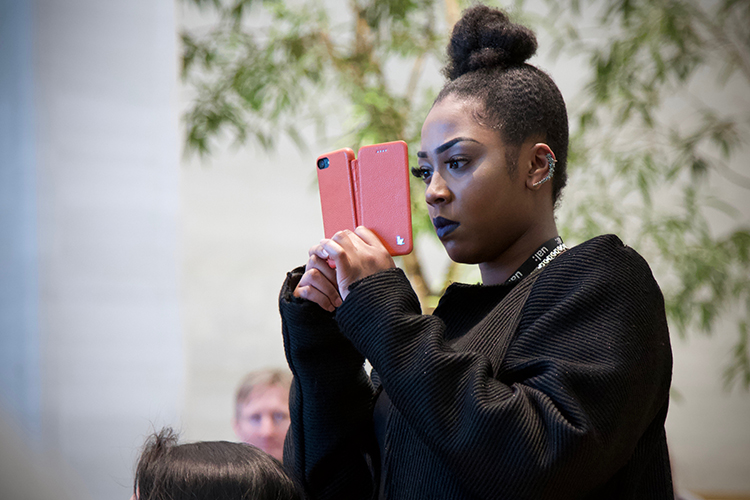 Sue spoke to the audience about her career in fashion illustration, followed by a short lesson on using iPad Pro to illustrate. The audience were invited to illustrate a live model who wore a collection by MA Fashion Design Technology Womenswear graduate Missy Wu. With the help of BA (Hons) Fashion Illustration student Rochelle Phidd, the audience were given the best tips for illustrating on an iPad. Below we share some photos from the evening.