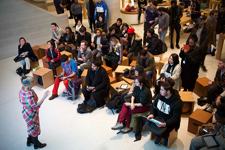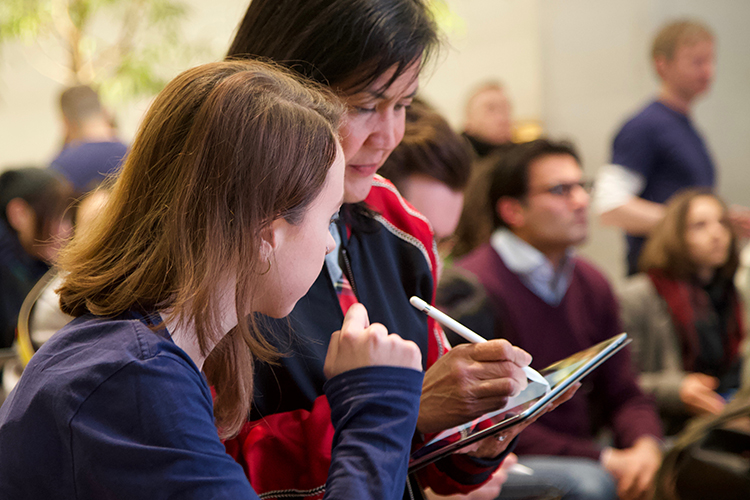 Last week, BA (Hons) Fashion Illustration course leader Sue Dray was joined by LCF students to deliver an iPad Illustration workshop, coinciding with the relaunch the Apple Store on Regent Street, as part of their event series, #TodayAtApple. It’s the second time Sue has taken part in this kind of event at Apple, and both times have been a great success.