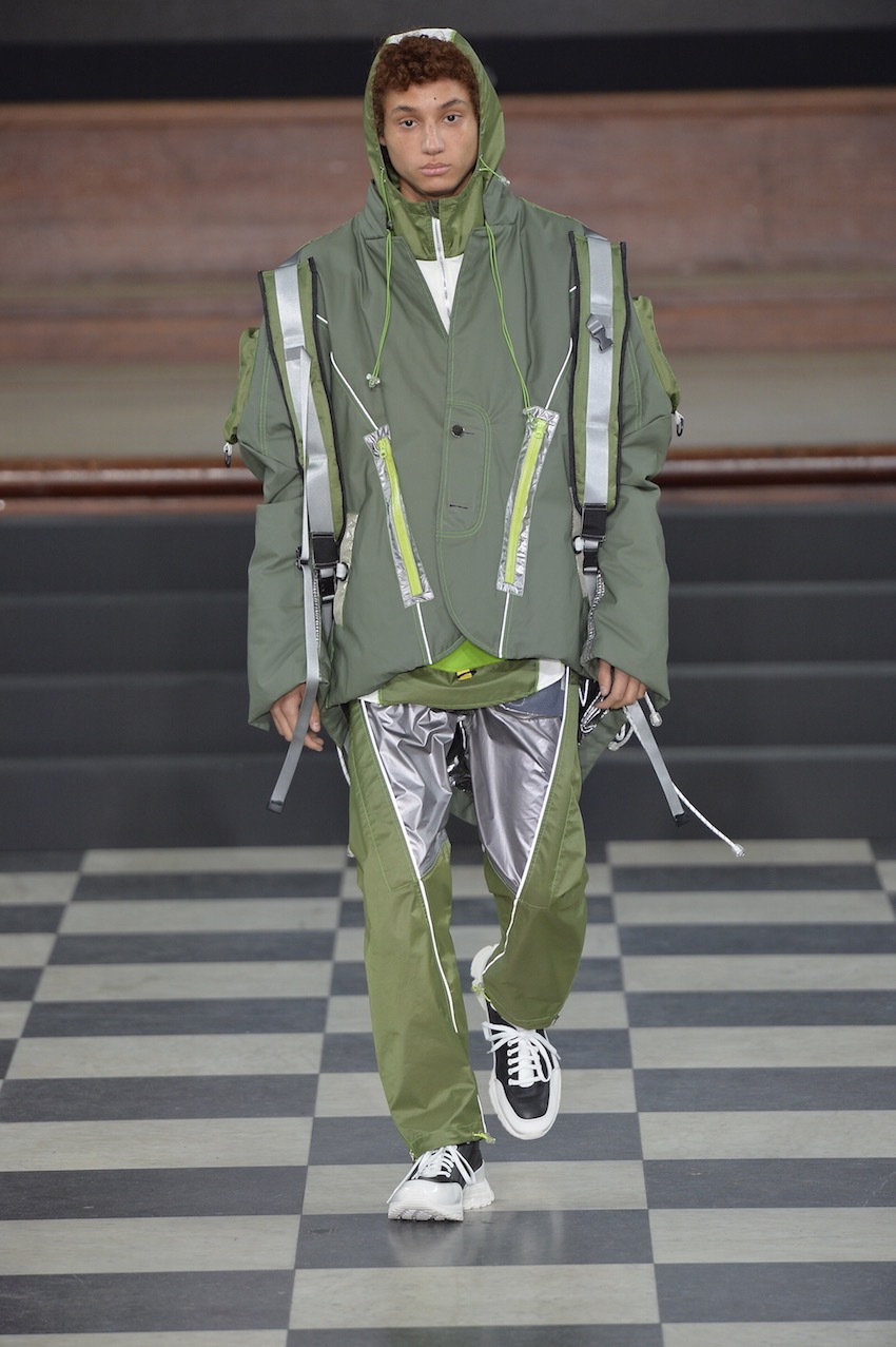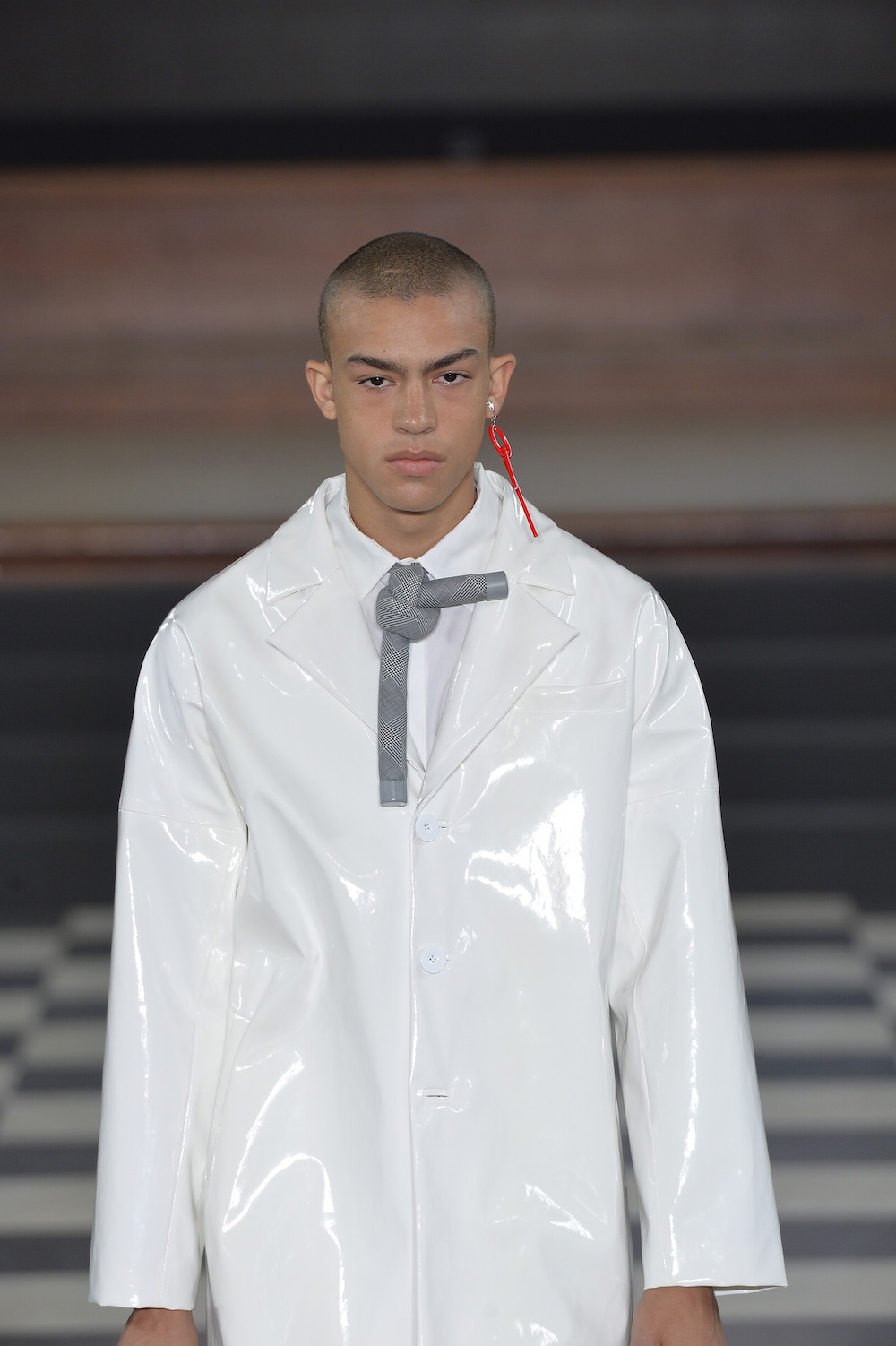 Closing the show was graduate Zhenhao Guo, whose collection ‘A Man of Many Scars’ interprets medical sutures in garment construction. His collection was an interpretation of sutures in garment construction. He said, “My final collection is about the wounded man and discarded bodies. I chose some elements from the medical world like a tourniquet and some suture methods, and also, I read a lot about the use of plastics in medicine.” Read the full interview here.