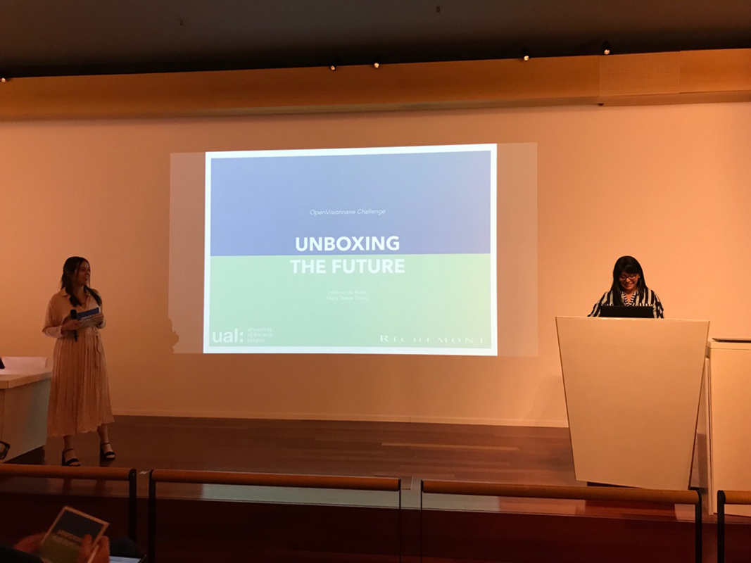 My team was shortlisted for the final of the international competition organised by the Richemont group. I went to Geneva with my teammate Deborah De Mello (MA Fashion Futures graduate) to present our concept ‘Unboxing the Future’. The idea was to improve packaging and reduce waste by using a digital booklet to minimise paper usage.