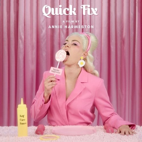 Quick Fix, a short, but oh-so-sweet story of a user’s journey on the way to ultimate self-optimization. Quick Fix HQ, a glossy, contrived and overwhelmingly pink self-care sanctuary, welcomes the user to reach their full glowing potential at the click of a button. Both retro and modern, this hyper-stylised, playful short, illuminates the cross-over of consumerism, social media and feminine beauty ideals. With vibrant colours and an abundance of questionable products, director Annie Harmeston satirically questions the notion of self-care online.