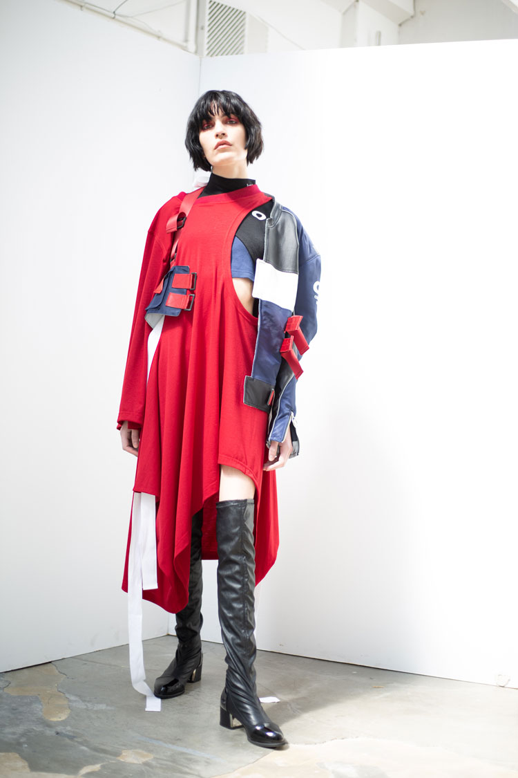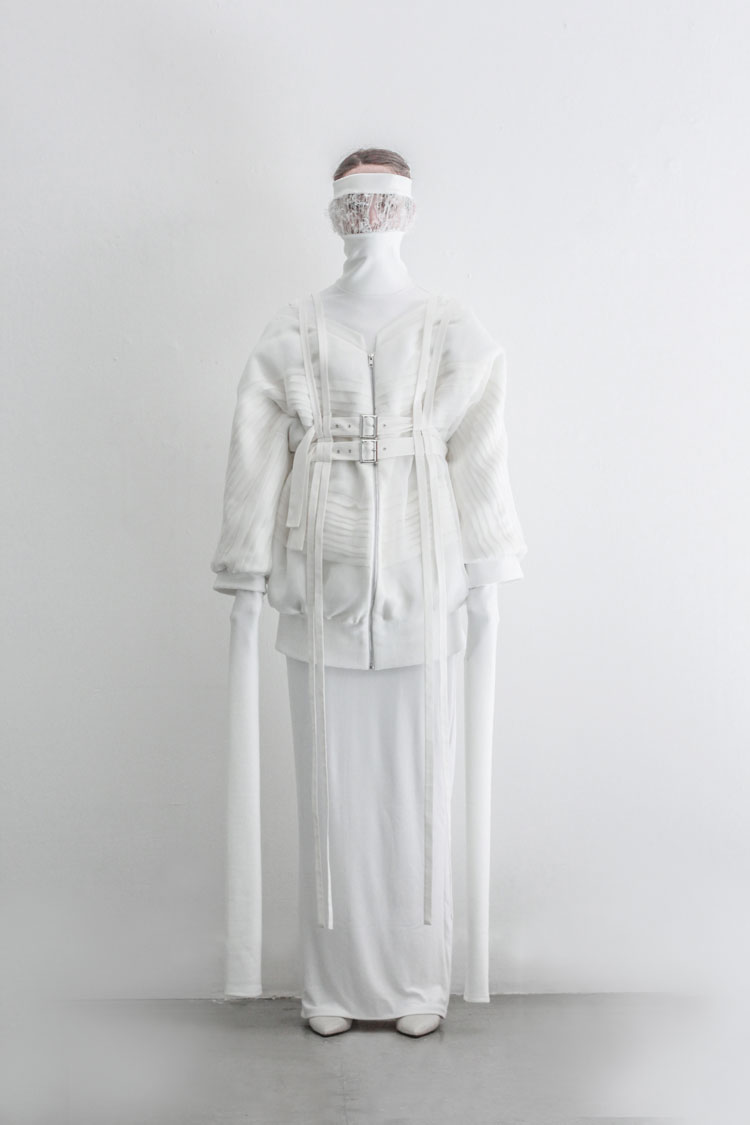 Jihoon Lim studied BA (Hons) Fashion Design Technology: Womenswear and a few terms to describe his final project would be: beyond gender boundaries, tech-wear, motorcycle accident, my personal trauma. About his time at LCF Jihoon told us: “At LCF, I was able to steadily evolve my design identity and asthetics”.