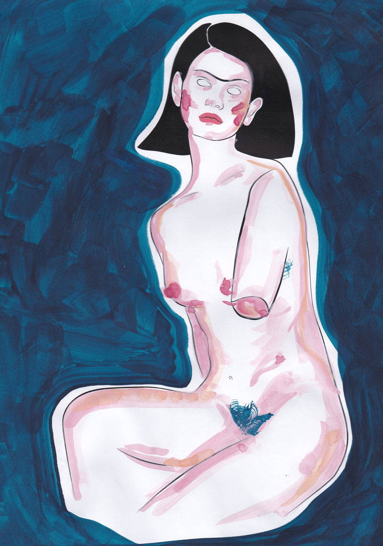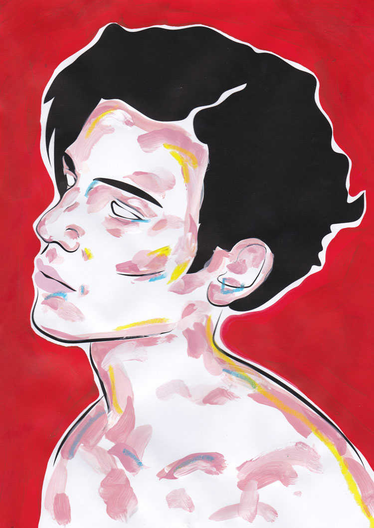 “My final project is all about celebrating imperfections, body hair, skin, gap teeth. I wanted to illustrate figures embracing their insecurities, as in every imperfection there is beauty” says Jade Rowing. Jade once accidentally may or may not have married her tour guide in Cambodia, who gave her a cobra as a wedding gift. Of her time at LCF Jade says, “it’s a stressful roller coaster of emotion and debt, but a roller coaster you would get on over and over again”.