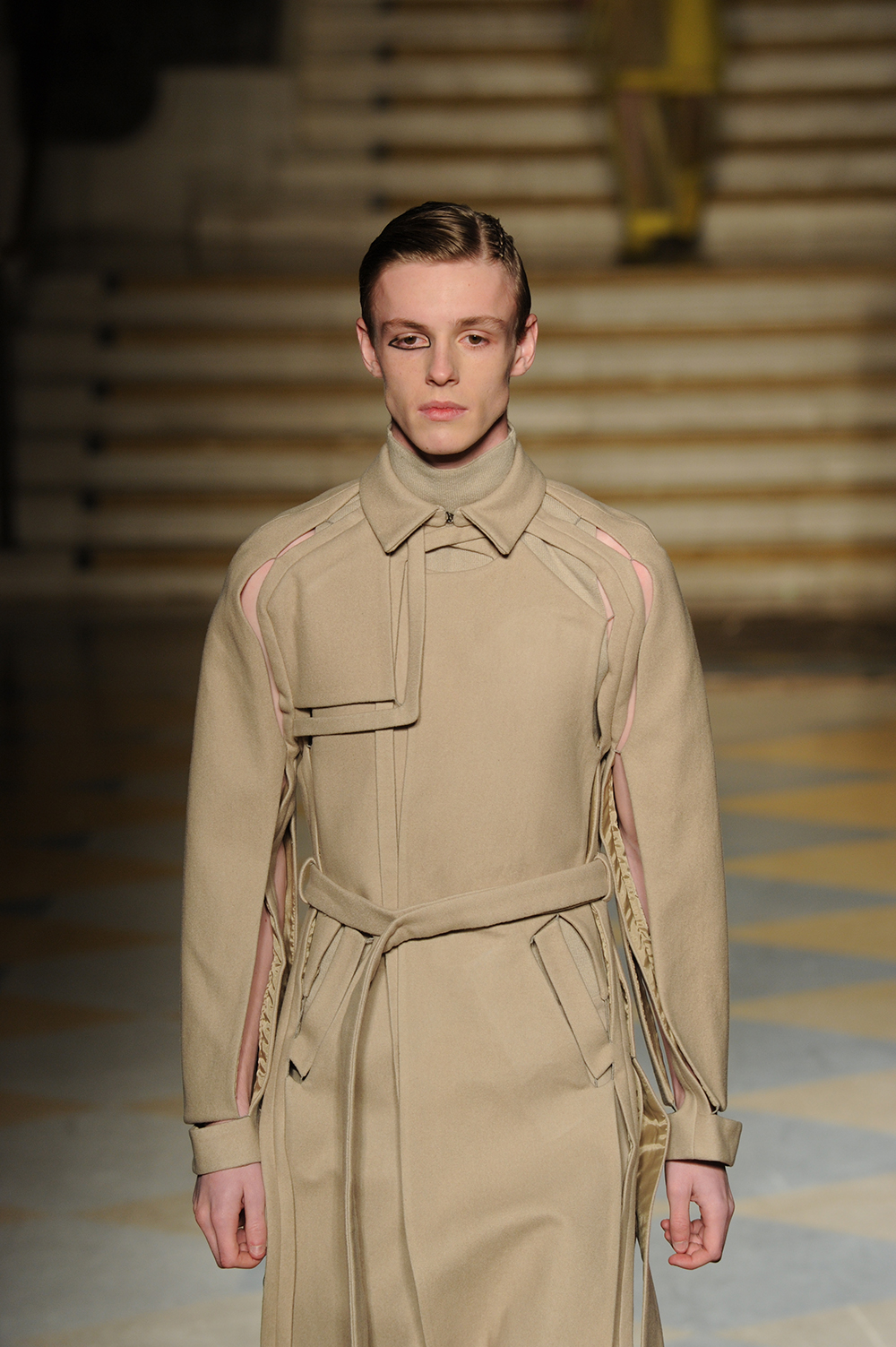 LCFMA16 Menswear student Peng Chen presenting his collection at this years catwalk show. Photo credit: Roger Dean