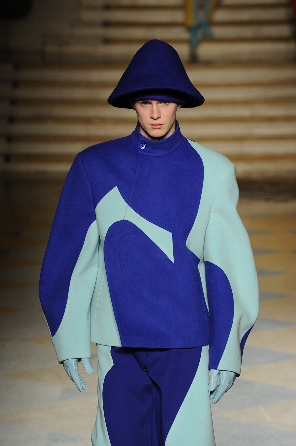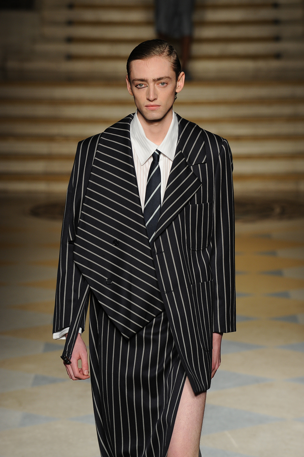 Peng Chen called his collection Normal-in-Normal. All his garments are one size, he drew inspiration from larger and thinner sizes of pattern cutting.
