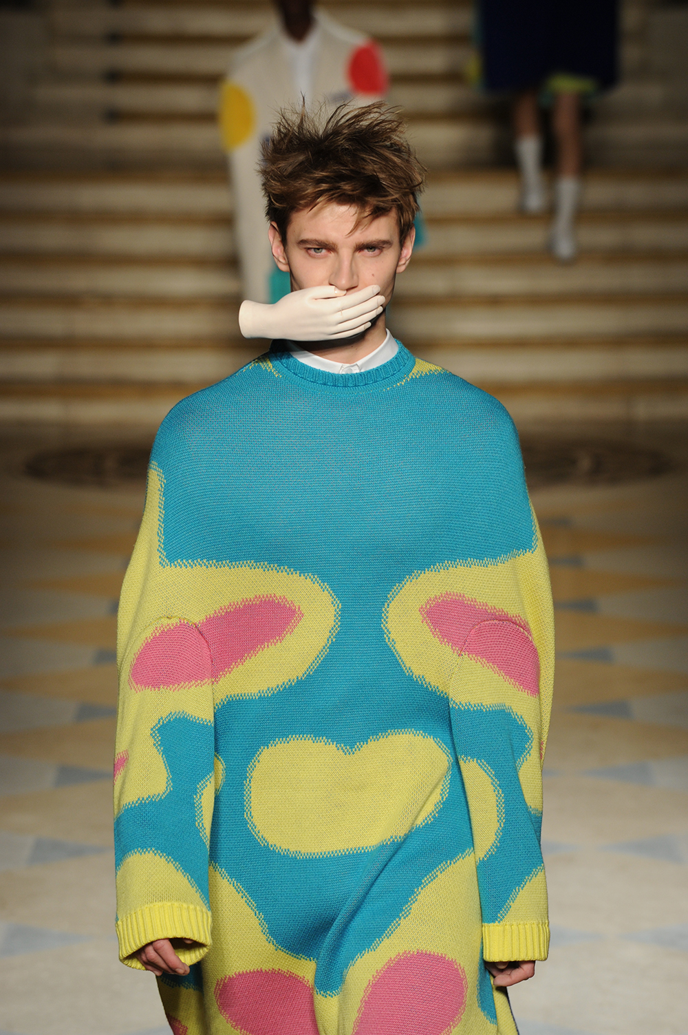 Jeuken Cho drew inspiration from depression and the actor Robin Williams. His garments express the juxtaposition of happy on the outside and sad on the inside.