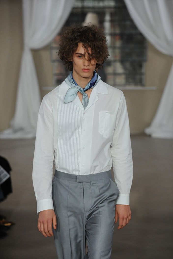 The show was styled by Michael Miller, who worked closely with the students to help them shape their garments and deliver a smooth and high-quality final collection. Makeup was provided by Maria Comparetto, and hair styling was assisted by Andy Heasman and the RUSH team for L’Oréal Professionnel. The vocalist Phoebe Haines accompanied each collection singing classic opera songs. Here, we take a look back at the MA Fashion Design Technology Menswear collections on this year’s ecclesiastic catwalk.