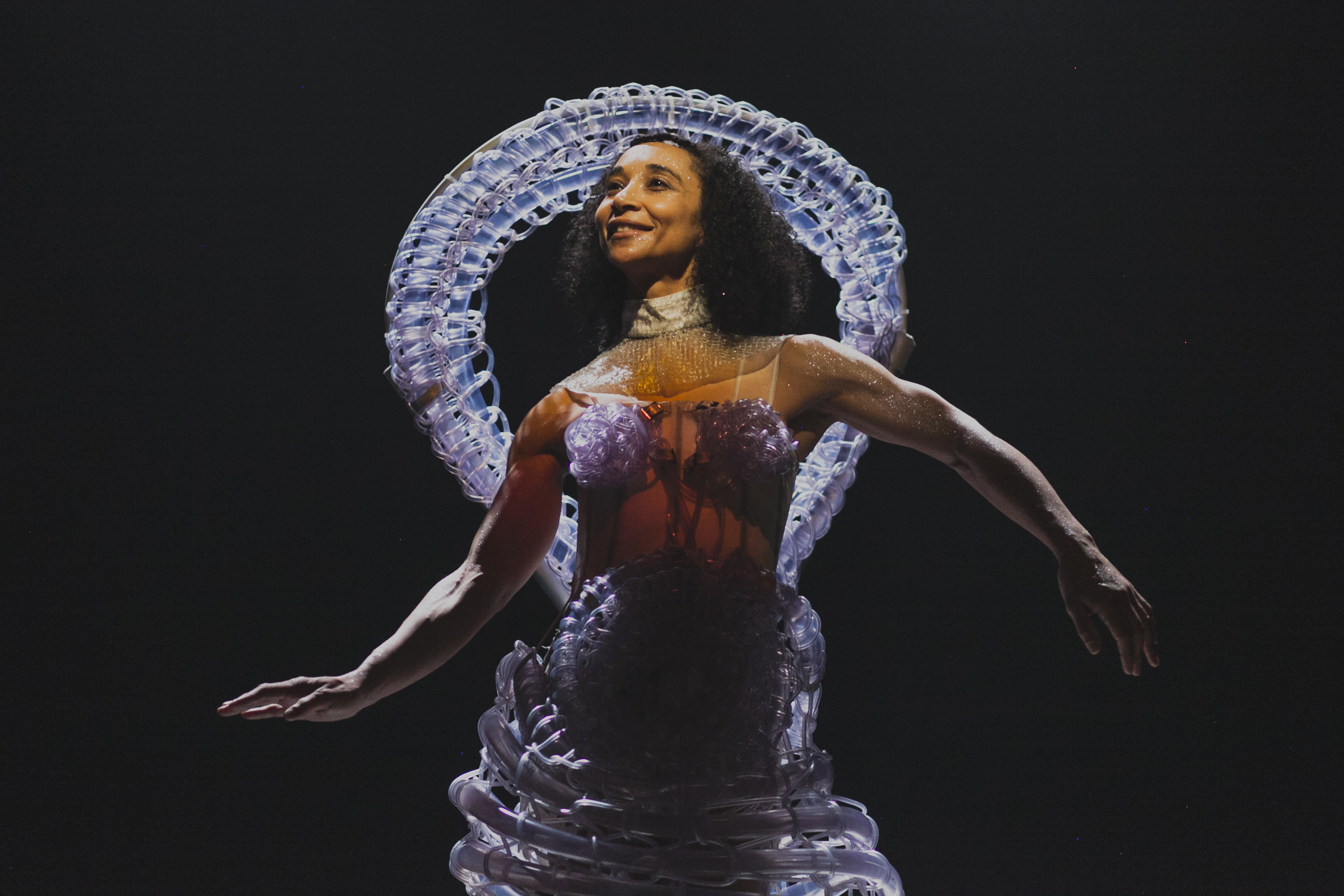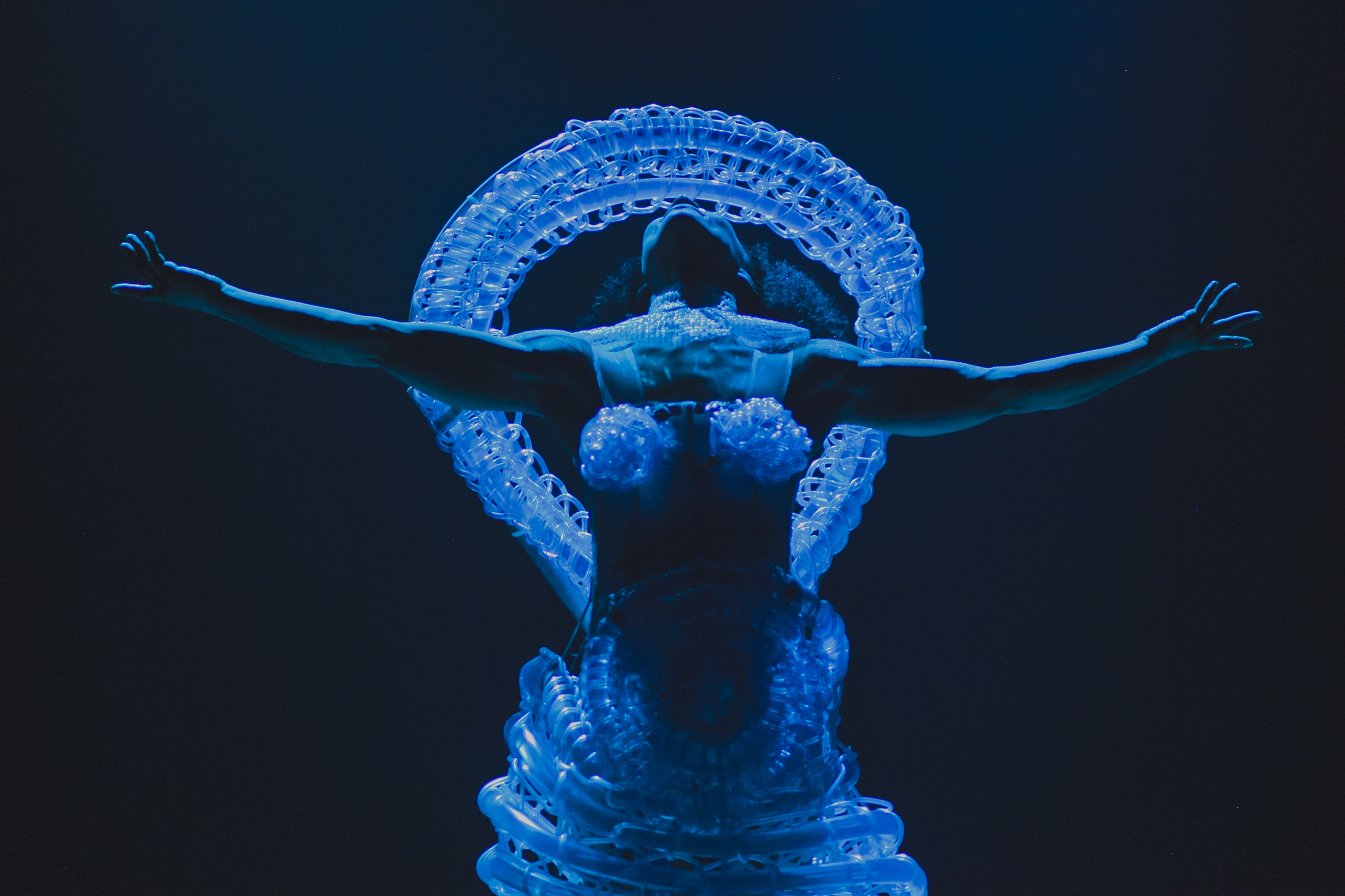 Mother of Water is a performance costume inspired by three Brazilian Folkloric female water entities: Yemanjá, mother of the sea; Oxum, mother of rivers and waterfalls; and Nanã, mother of mud and rain. The aim of this piece is to establish water as a symbol of fertility through its embodiment in the figure of the water woman.