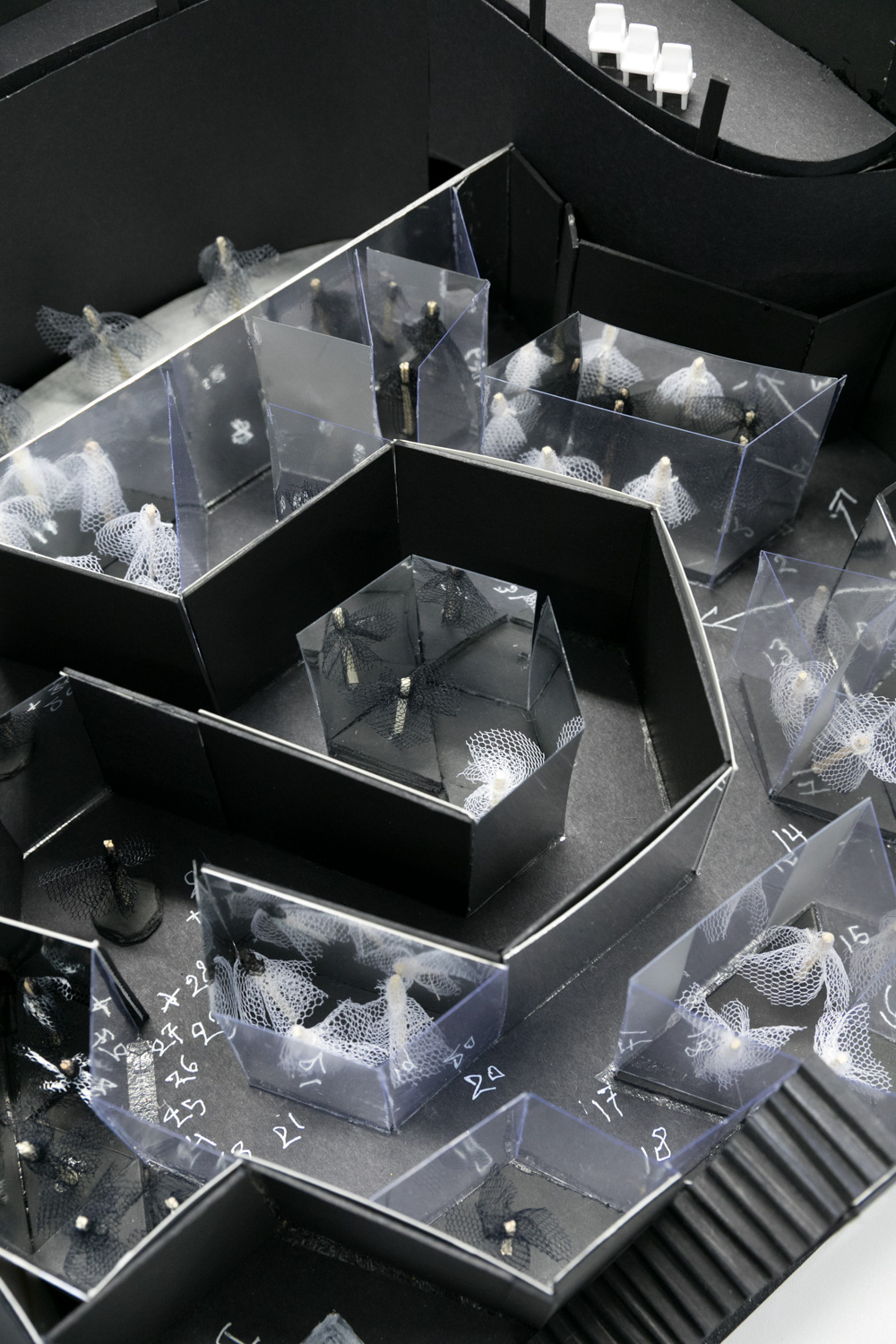 Through a 3D model, I proposed a multi-sensory exhibition at The Royal Opera House's Linbury Theatre exploring Swan Lake's abstract concept of good/white versus evil/black, represented by the costumes of the main characters of the ballet. The exhibition will include a human size ballerina box and a mirror maze, and it will showcase designs from different designers and époques, like the 1950s Christian Dior for prima ballerina Dame Margot Fonteyn.