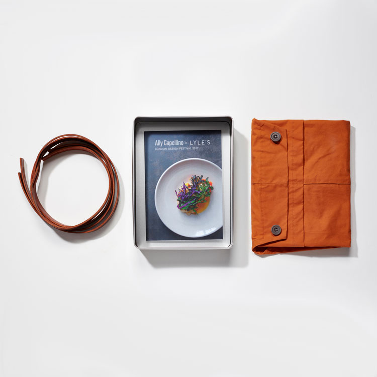 Ally Capellino and Lyle’s share a love of straightforward products that show the best of raw materials. Made in British Waxed Cotton, a signature Ally Capellino fabric, the apron is a more considered take on the norm with removable, adjustable bridle leather straps. Inspired by the Ally Capellino AW17 campaign which was shot at the restaurant, the apron is packed in its own metal sandwich tin also containing a special Lyle’s autumnal recipe card.