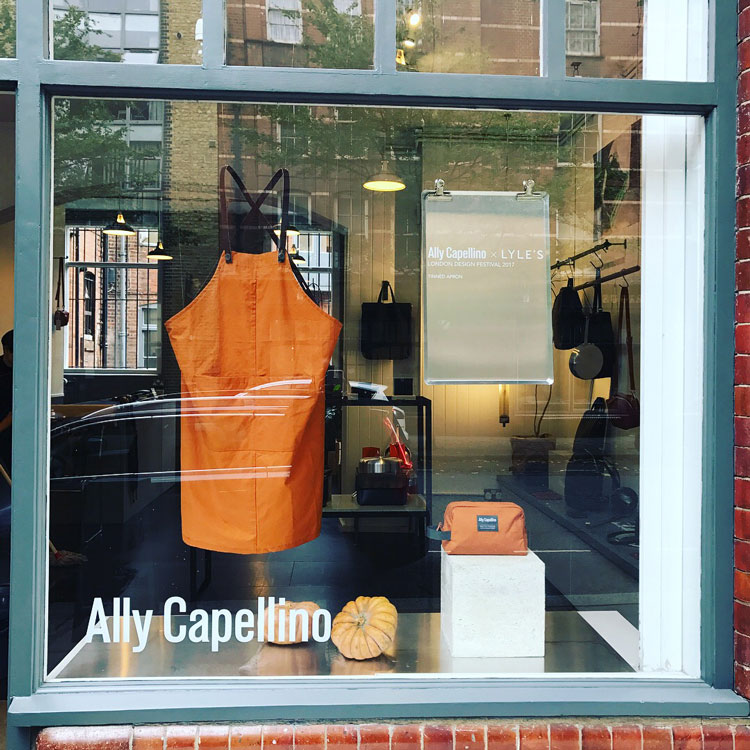The apron is available to purchase for £85 at both Lyle’s and Ally Capellino stores in Shoreditch and Portobello, as well as online.
