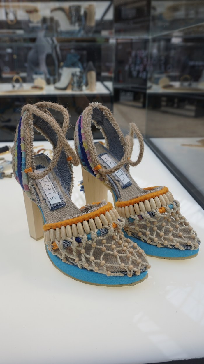 Another highlight was BA (Hons) Cordwainers Footwear graduate Amber Capewell and her collection based on Marrakech, a place she got to travel to after winning LCF’s Fashion Matters Cordwainers travel bursary. She told us, “Islamic jewellery boxes inspired this design – I saw a lot of marble and pearl in Marrakech which inspired me. I love the square block heel on this design and how it all matches up perfectly.”