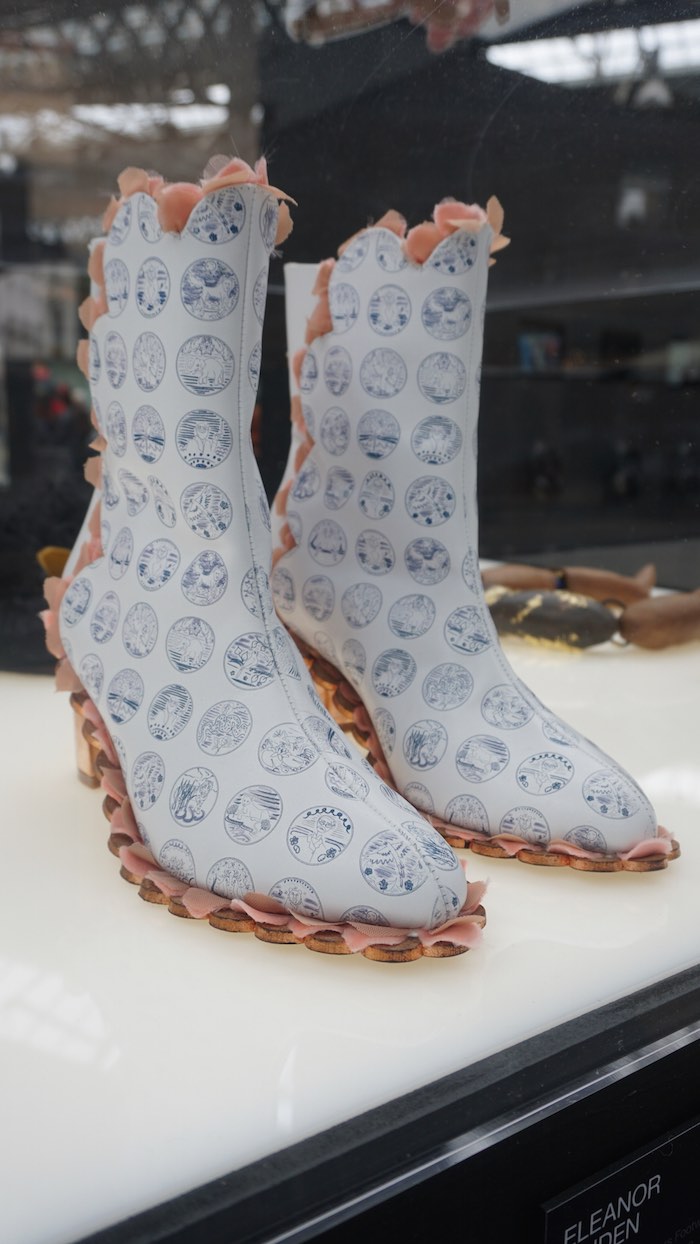 BA (Hons) Cordwainers Footwear: Product Design and Innovation graduate Eleanor Sinden was another talking point at this year’s exhibition. The footwear she designed was inspired by the National Trust Property, Bateman’s (former home of author Rudyard Kipling). She said her final collection focuses on innovating the traditional, hand-crafted material techniques found within the house. The collection print designs have been influenced by the wall coverings, and hand embroidery is inspired by the curtains and bedspreads.