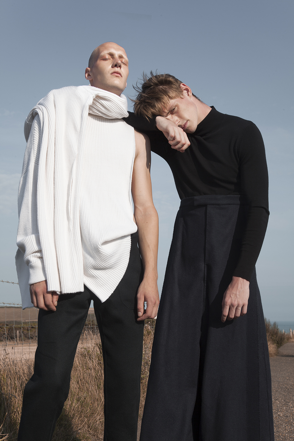 He took his collection to Seven Sisters, nope, not north London, Sussex. The chalk white cliffs were the backdrop to his Lookbook. There’s something “really poetic” about the area he tells us. Often referred to as the ‘Edge of England,’ it fitted with the narrative Lukas and photographer Wanda Martin wanted to tell.