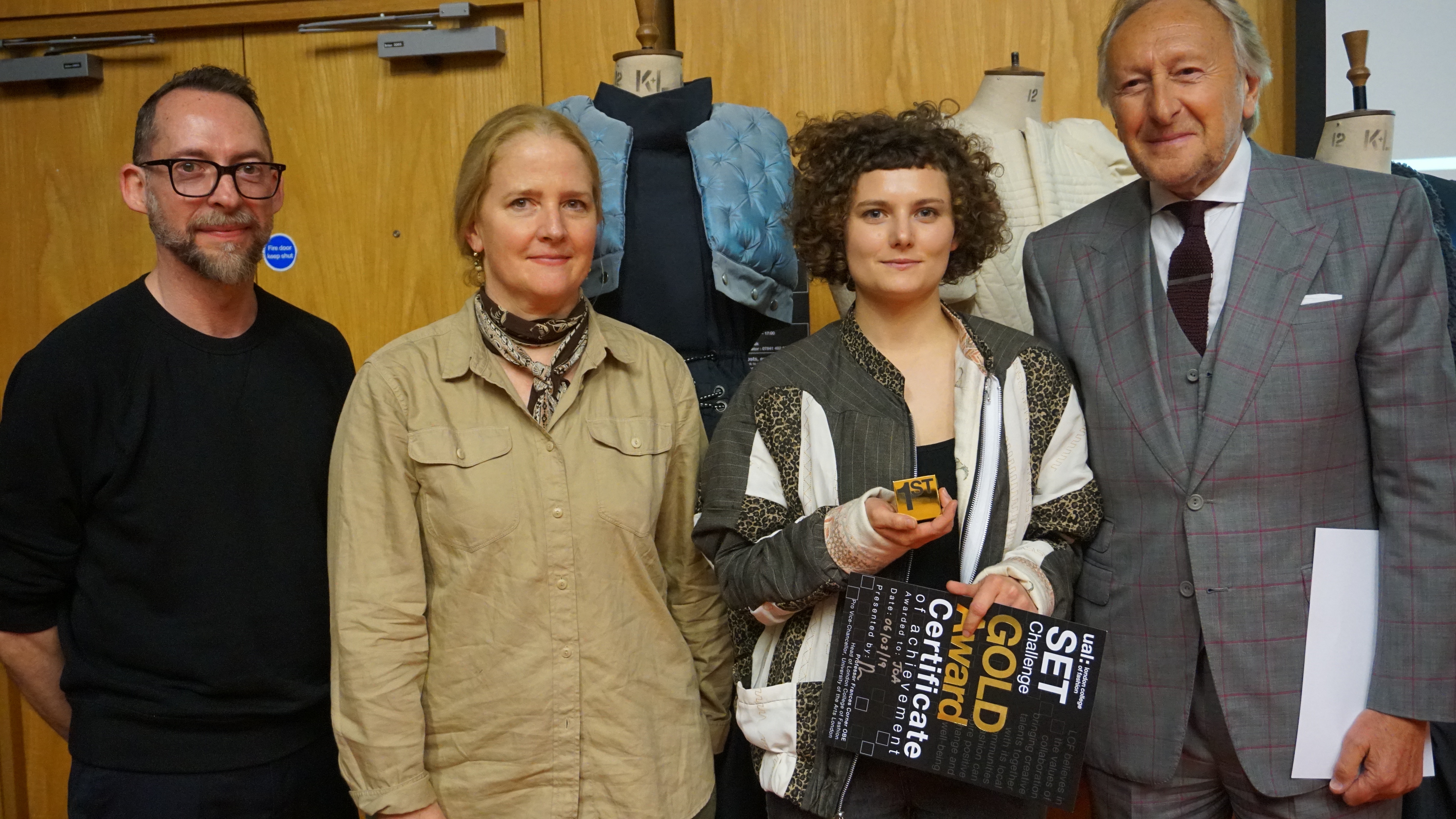 The 5 finalists had the opportunity to discuss their proposals in front of 3 high-profile industry experts: Iain Ewing, Head of Design for Womenswear and Accessories for John Lewis Partners; Clea Sullivan, Head of Menswear and Childrenswear Design for JLP; and Harold Tillman CBE, LCF alumnus, fashion entrepreneur and former Chair of British Fashion Council. After hearing the students' pitches, the judging panel allocated the £8,000 in prize money to each business idea.