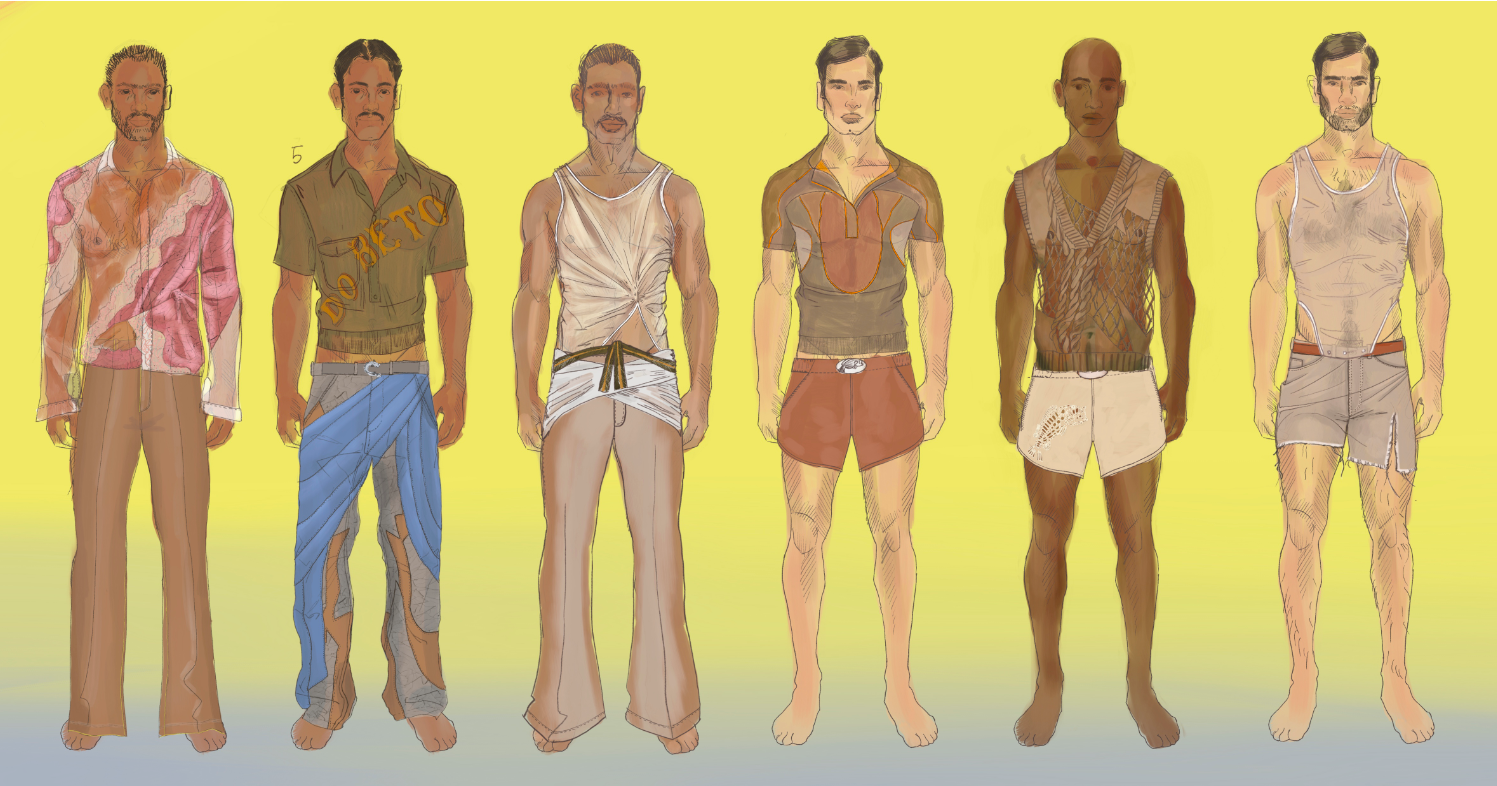 PEDRO: I love working with photography and my final project started as an exploration of portraiture of men in Brazil in the 70s. I felt like there were images that had a lot of power and a very specific characteristic. They were taken where people had no access to photography, and it was there one opportunity to portray themselves as they wanted to be seen. I then met people that I felt were displaying this heightened masculinity in society today and explored what they were conveying that through. It extended itself to uniforms and service culture in Brazil and how those have very strong iconographies as well as how masculinity is represented. I developed a collection that is masculine, but it plays on women's techniques to enhance the body shape and make it more flattering and sexier, while still maintaining a masculine outlook.
