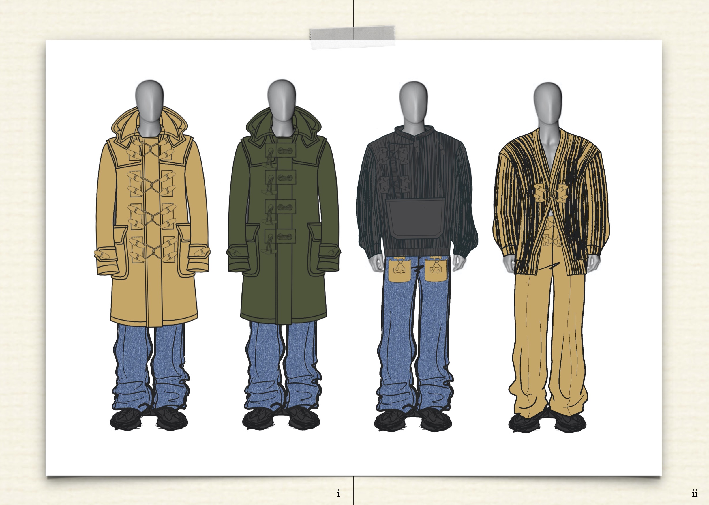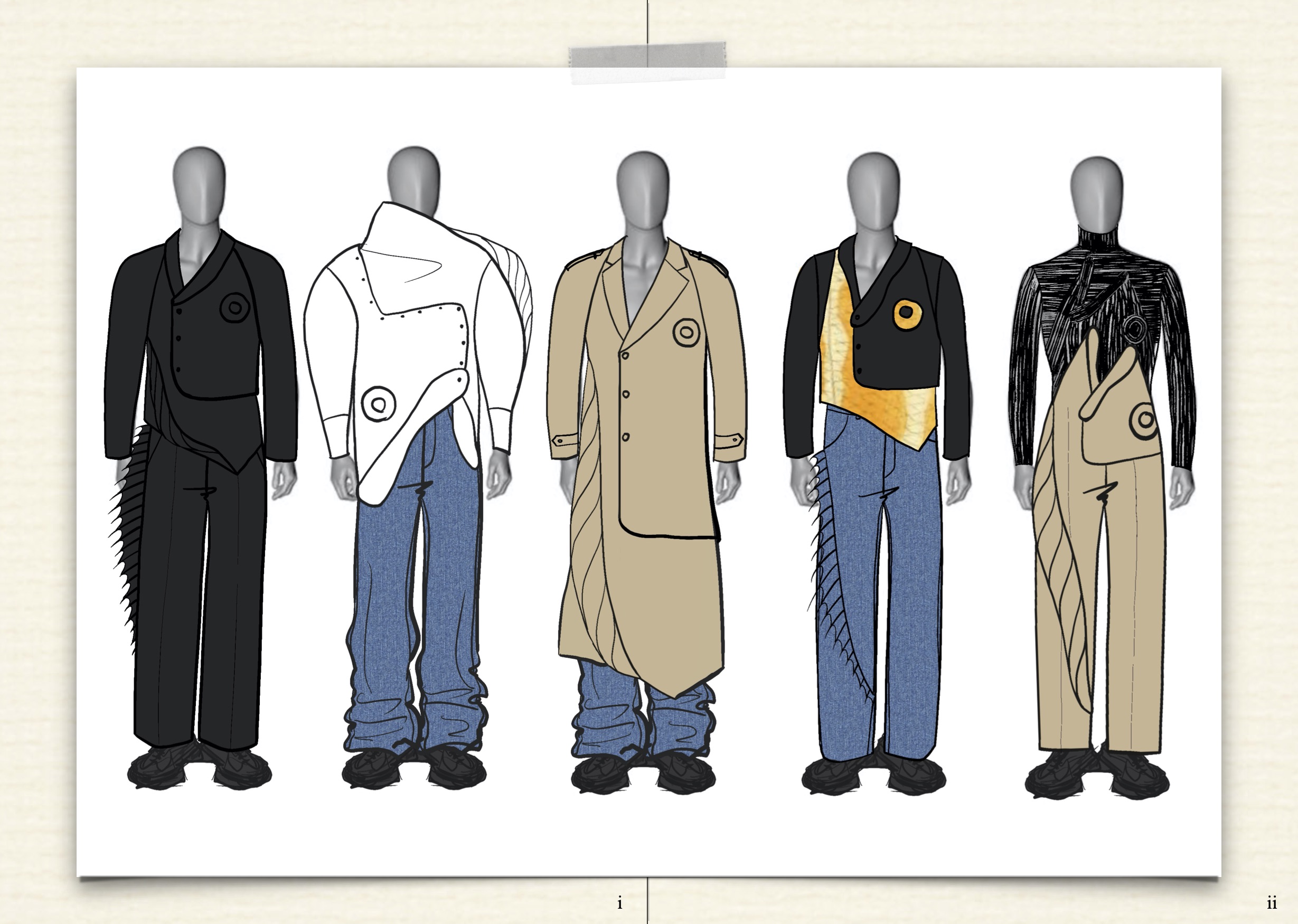 ZHEN: The name of my final project is Holy Bull****. At the beginning of the project, I didn't know what I wanted to say or express, so I just started to type down my random thoughts like “I'm so hungry but my fridge is so empty, I need to go shopping”. Then I chose some of these to visualize and further develop in order to come to my design. Because of the quarantine, we don't have a physical outcome of these projects. I have about 40 or 50 looks and then I picked eight of them as my final line up.