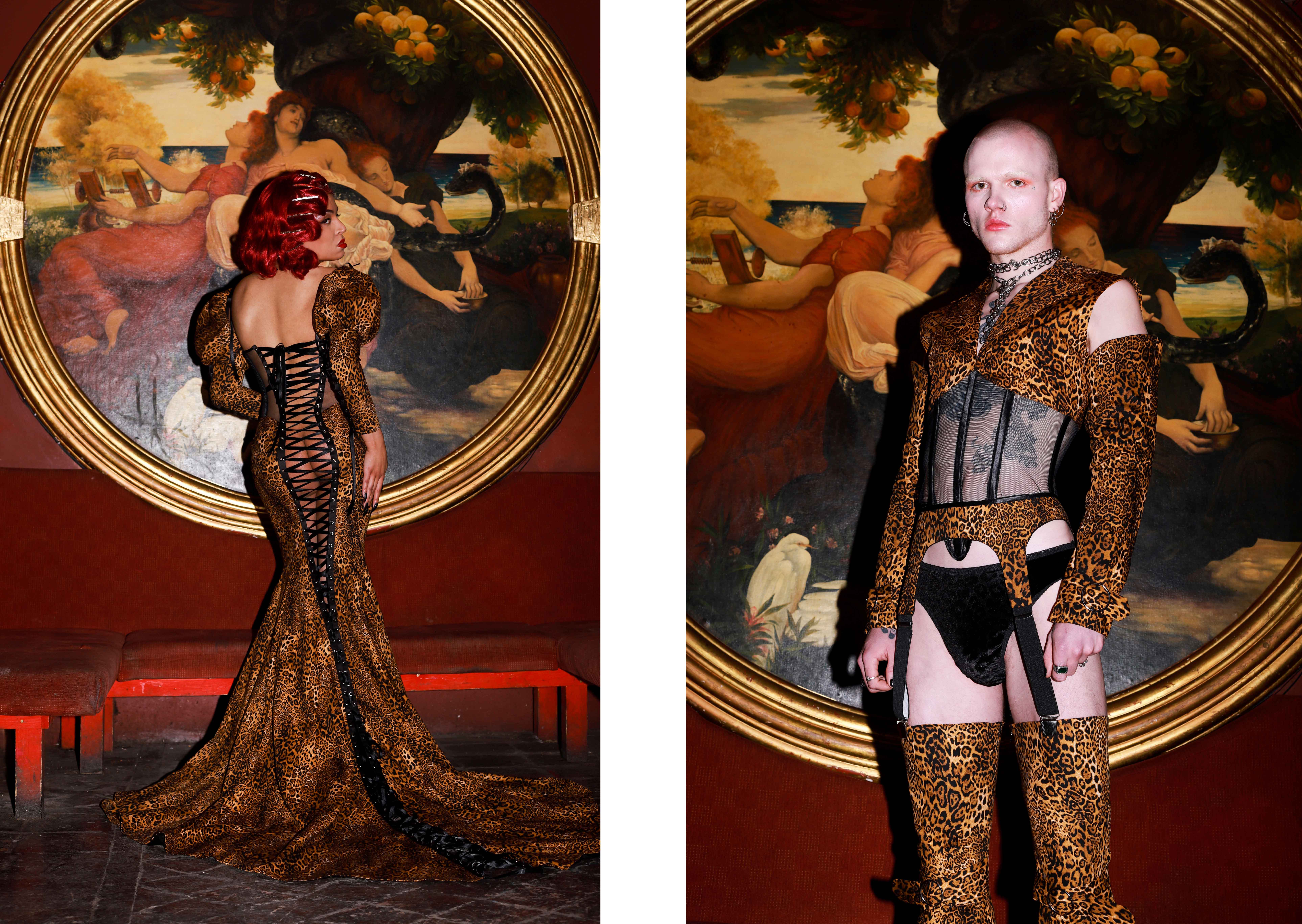 Yours Cruelly was something that I eventually knew I was going to do sooner or later because I spent most of my childhood designing bridal dresses. It can be seen as an alternative bridal collection. I created a full concept not only surrounding the bride but everyone attending the ceremony – the groom, the priest, the bridesmaid... The full leopard-print looks came up while I was doing an internship for Preen by Thorton Bregazzi and in one of the conversations during lunch time with the team I sort of said I would only marry if my dress was in leopard print. I guess it just made sense – it was something nobody ever thought about before.