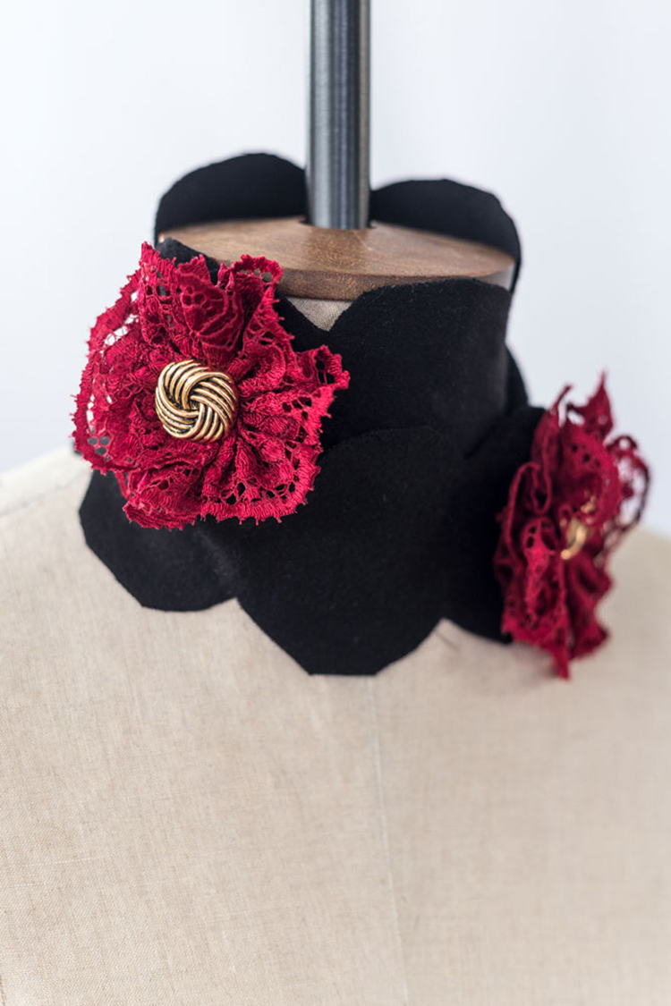 The women at Making for Change designed and made accessory pieces using high quality fabrics donated by the Zegna Foundation, the women created items including collars, cuffs, bibs, bracelets and hairbands. These were sent to San Patrignano with accompanying notes.