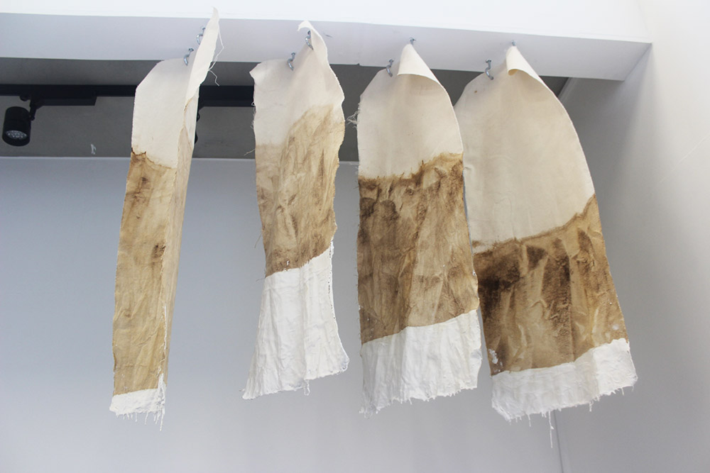 Liz’s canvas dipped in plaster and stained with coffee