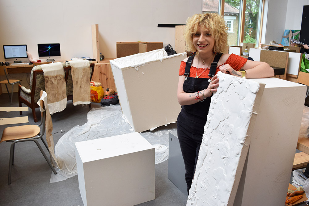There is a programme within this course which is called Personal and Professional Development (PPD) where you can put up your own exhibition or help another artist. I put on an exhibition in my second year during PPD. I curated an exhibition with 25 other artists and it went really well so I then went on to curate another exhibition, one with a live music venue, so I coordinated all the bands and the artists. I never thought I was bothered enough to organise anything like this, I didn’t think that was my area. I realised I am actually quite good at it, organising events and approaching people, pulling people together, I loved it. I think I might do a masters in curating, while staying in touch with my practice and my love for materials.