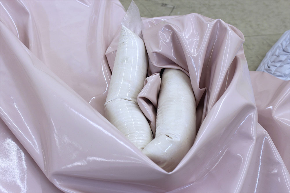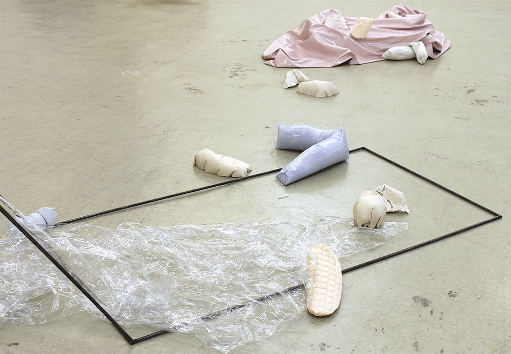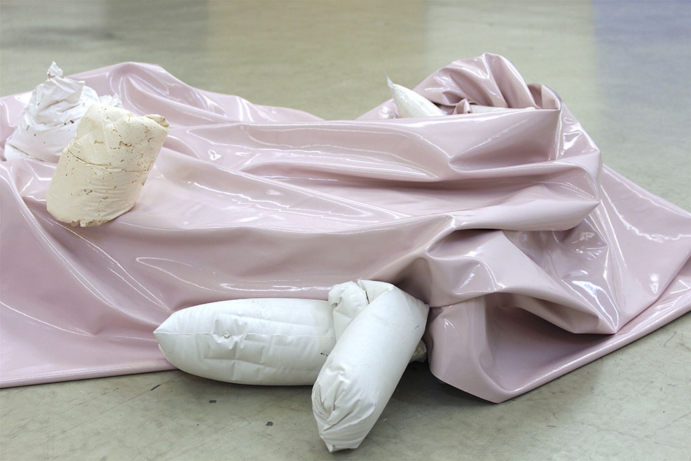 These objects on their own are very artificial materials, but somehow the way I control them they end up becoming very similar to our own bodies. When you look at them you can see the resemblance to a leg or a foot, they are full of creases and folds, just like the way our bodies have all these natural lines and indentations. My work always naturally ends up reading this way and I like the soft supple nature of flesh and things that are very tactile and squishy. The body is so ingrained with that, it is all of these strange imperfections and small details and lines. I find it really intriguing and erotic in an innocent way.”