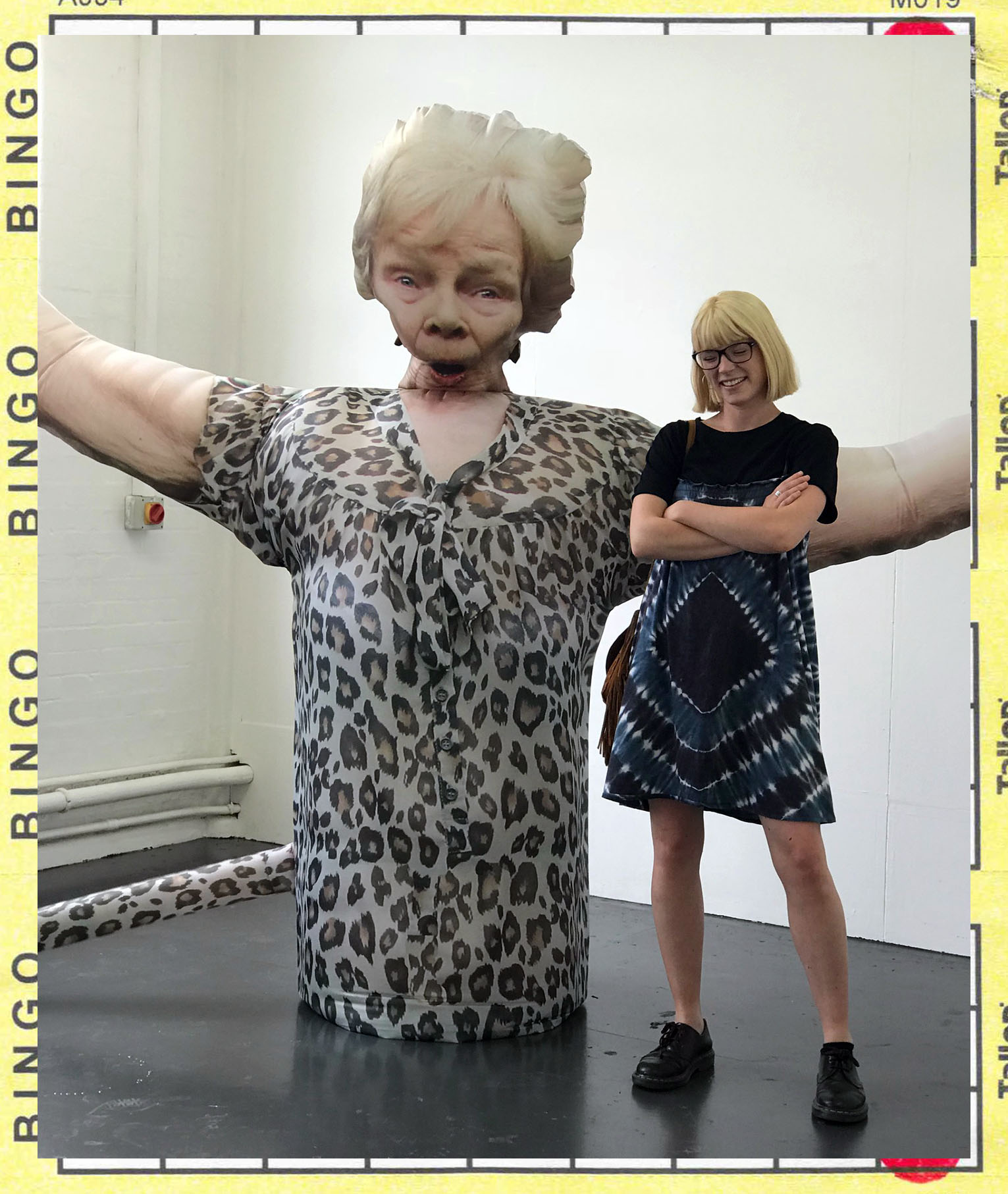 ‘HOWSE’ is definitely one of the most (unintentionally) attention-seeking artworks I have ever made! It made ‘GET IN’ seem quite contemplative and subtle, which I liked. On our Private View night seeing a big crowd of people surrounding her, waiting with their phones was quite a funny scene. Due to the timings (2 minutes off, 10 seconds on) it meant that the viewer could catch her at any point in her unrelenting journey through the highs and lows of bingo (life). Maybe they would completely miss her inflating if they rushed around the room but they would still catch her deflating and sinking as the air escaped from the top of her head. I was really happy to see kids interacting with both pieces, although some were terrified by ‘HOWSE’! It did surprise me in its ability to build a sense of tension, hold viewers in a position of contemplation and provoke an involuntary laugh/smile/sense of terror….