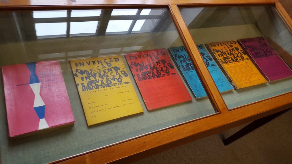 The display explores two aspects of the collections: key magazines in the development and international dissemination of Concrete poetry, including rare titles like Noigandres, Invenção: revista de arte de vanguarda, Spirale, Konkrete poesie, Poor.Old.Tired.Horse and Futura; and a range of books, cards and other work that highlights the remarkable involvement of staff and students at Chelsea School of Arts with this movement in the seminal period of 1964-1967, from the re-opening of the “new” school at Manresa Road, Chelsea, with Edward Wright as Head of the School of Graphic Design, to the Concrete Poetry exhibition curated by Stephen Bann as part of the inaugural Brighton Festival, 50 years ago (14-30 April 1967).