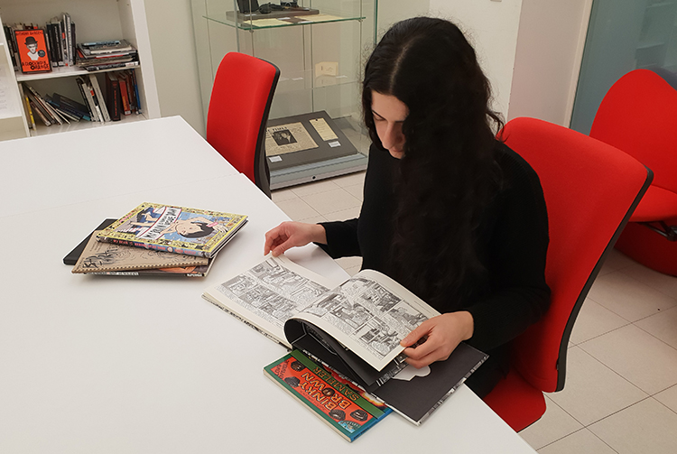 Maria cataloguing some of the comic collections (c) Robin Sampson